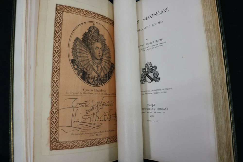 BOOK IS IN VERY GOOD OR BETTER CONDITION BEAUTIFULLY BOUND BY RIVIERE IN FULL CRUSHED MOROCCO WITH BRIGHT GILT DETAILS TO BOARDS, SIX COMPARTMENTS AND FIVE RAISED BANDS TO SPINE WITH BRIGHT GILT DETAILS AND TITLE. SOME COSMETIC WEAR TO FRONT HINGE (SEE PHOTOS). BINDING AND HINGES ARE VERY GOOD, NO LOOSE OR MISSING PAGES, PAGES ARE BRIGHT AND CLEAN, WITHOUT MARKS AND MINIMAL FOXING. EXTRA ILLUSTRATED, BOOK MEASURES 10"x7". LIMITED EDITION, SIGNED BY AUTHOR, 120 YEARS OLD. A STUNNING BINDING BY RIVIERE IN GREAT CONDITION. 1900 William Shakespeare Poet Dramatist and Man #68 of 150 Bound by Riviere 10" 1900 William Shakespeare Poet Dramatist and Man #68 of 150 Bound by Riviere 10" Description RARE!!! 1900 BOUND BY RIVIERE SIGNED BY AUTHOR 120 YEARS OLD EXTRA ILLUSTRATED BOOK IS IN VERY GOOD OR BETTER CONDITION BEAUTIFULLY BOUND BY RIVIERE IN FULL CRUSHED MOROCCO WITH BRIGHT GILT DETAILS TO BOARDS, SIX COMPARTMENTS AND FIVE RAISED BANDS TO SPINE WITH BRIGHT GILT DETAILS AND TITLE. SOME COSMETIC WEAR TO FRONT HINGE (SEE PHOTOS). BINDING AND HINGES ARE VERY GOOD, NO LOOSE OR MISSING PAGES, PAGES ARE BRIGHT AND CLEAN, WITHOUT MARKS AND MINIMAL FOXING. EXTRA ILLUSTRATED, BOOK MEASURES 10"x7". LIMITED EDITION, SIGNED BY AUTHOR, 120 YEARS OLD. A STUNNING BINDING BY RIVIERE IN GREAT CONDITION. !!!CLICK HERE!!! Visit My eBay Store TO SEE ALL THE BOOKS WE HAVE FOR SALE!!! IF YOU LIKE WHAT YOU SEE THAN SAVE US TO YOUR FAVORITES BY CLICKING HERE. Add me to your Favorite Sellers RARE ANTIQUARIAN BOOKS CAN BE FRAGILE AND NEED TO BE HANDLED WITH CARE. About us: Reagan's Rare Books is a purveyor of Antiquarian books primarily from the 18th and 19th centuries. We love antique books! We search all over the country for the finest rare books, looking for those with beautiful bindings and in great condition so that we can offer you, the customer, a truly rare one of a kind collectible. Paypal Preferred. Please make payment arrangements within 48 hours of winning your auction. We reserve the right to re-list items not paid within 5 days. Shipping *To Insure That Your Package arrives without any Problems , Please Double Check to Make Sure That The Address You Have Selected in eBay Is Correct. All books are carefully bubble wrapped and packed in a box with adequate packing peanuts to prevent any damage during shipment. All books are shipped with delivery confirmation and tracking. Books over $75.00 are automatically insured. RETURNS 100% Satisfaction Guaranteed. Returns accepted for any reason within 30 days of receipt. PLEASE CHECK MY OTHER LISTINGS. POSTING NEW RARE BOOKS DAILY/WEEKLY. Images sell! Get Supersized Images & Free Image Hosting Create your brand with Auctiva's Customizable Templates. Attention Sellers - Get Templates Image Hosting, Scheduling at Auctiva.com. Track Page Views With Auctiva's FREE Counter