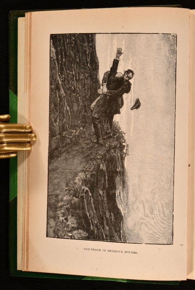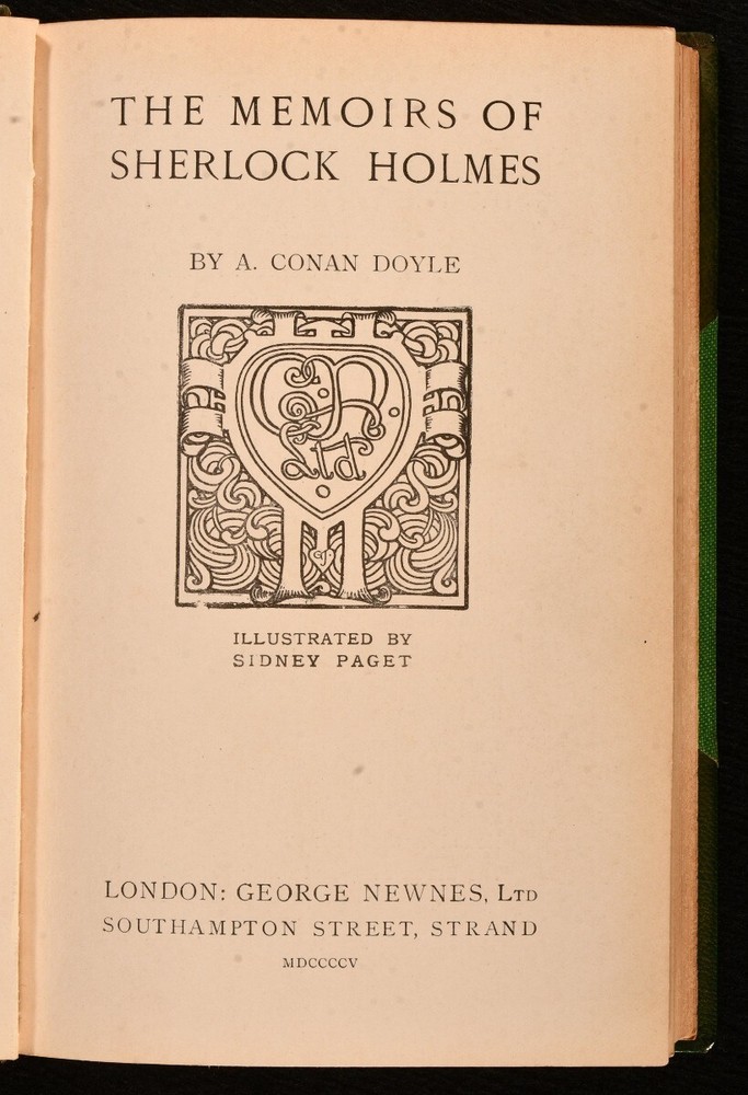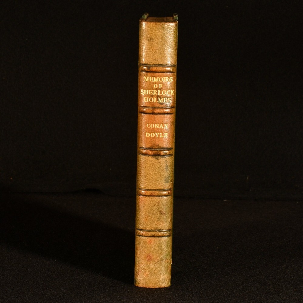 Click here to see our other books! The Memoirs of Sherlock Holmes Arthur Conan Doyle 1905 George Newnes LTD : London 7.5" by 5" [6], 296pp SUMMARY Arthur Conan Doyle's second collection of Sherlock Holmes stories, an illustrated leather bound volume with includes the gripping tale 'The Final Problem'. Illustrated,Leather Binding Overall Condition: Very Good This book weighs 0.75 KG when packed UK Postage: £ 3.99 US Postage: £ 19.99 EU Postage : £ 15.99 European Postage: £ 16.99 Asia Postage: £ 21.99 Worldwide Postage: £ 25.99 DESCRIPTION Rebound in a half crushed morocco binding with cloth to the boards. 'Memoirs of Sherlock Holmes' is the second of Conan Doyle's Holmes stories, following the consulting detective as he solves gripping mysteries. Illustrated with a frontispiece depicting Sherlock's fall from Reichenbach, and twenty-four plates, by Sidney Paget, the first Holmes he illustrated. The volume consists of eleven stories: "The Adventure of Silver Blaze"; "The Adventure of the Yellow Face"; "The Adventure of the Stockbroker's Clerk"; "The Adventure of the Gloria Scott"; "The Adventure of the Musgrave Ritual"; "The Adventure of the Reigate Squire"; "The Adventure of the Crooked Man"; "The Adventure of the Resident Patient"; "The Adventure of the Greek Interpreter"; "The Adventure of the Naval Treaty" and "The Final Problem". From the library of W. A. Foyle at Beeleigh Abbey, with his morocco bookplate to the front paste down. William Foyle was the co-founder of Foyles bookshop, founding the leading bookshop in 1903 alongside his brother. He purchased Beeleigh Abbey during the Second World War, an impressive twelfth century monastery in Essex, which became home to his library, one the largest private libraries in England. CONDITION In a half crushed morocco with cloth to the boards. Externally, smart. Spine is faded. A few light marks to the boards and spine, including a very small dampstain to the tail of the boards. Bookplate to the front paste down. Very small tidemark to the tail of the rear paste down. Internally, firmly bound. Pages are bright and clean. Overall Condition: Very Good GLOSSARY OF TERMS Overall Condition (Dustwrapper condition rating is shown after that for the book itself, where a dustwrapper is present) Fine - Very well preserved copy showing very little wear Very Good Indeed - Only one or two minor faults, really a very attractive copy Very Good - Quite a wide term meaning no major faults but probably several smaller ones often expected given the age of the book, but still a respectable copy Good - Meaning not very good. Some more serious faults as will be described in the condition report under 'condition' Good Only - Meaning one or more faults that could really do with repair Fair - As with good only above but with other faults leaving a compromised copy even after repair Poor - Really bad and possibly seriously incomplete. We only sell books in this condition where their rarity or value makes them attractive none the less. Major defects will be described. GUARANTEE We offer a full money back guarantee on our descriptions. Please ask for details and conditions. We prefer PAYPAL. If you pay via PAYPAL we will post the item off the same or the next working day with the postage you have selected. Please note we cannot accept USD cheques