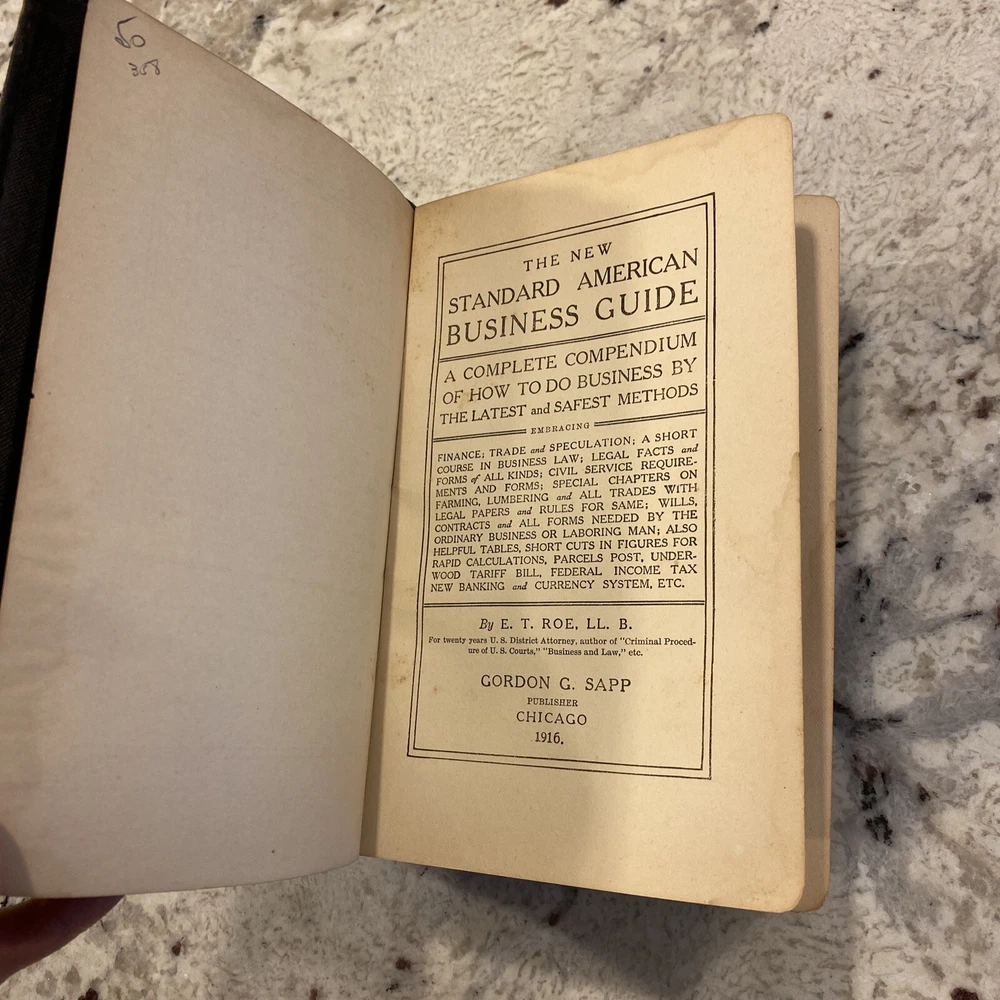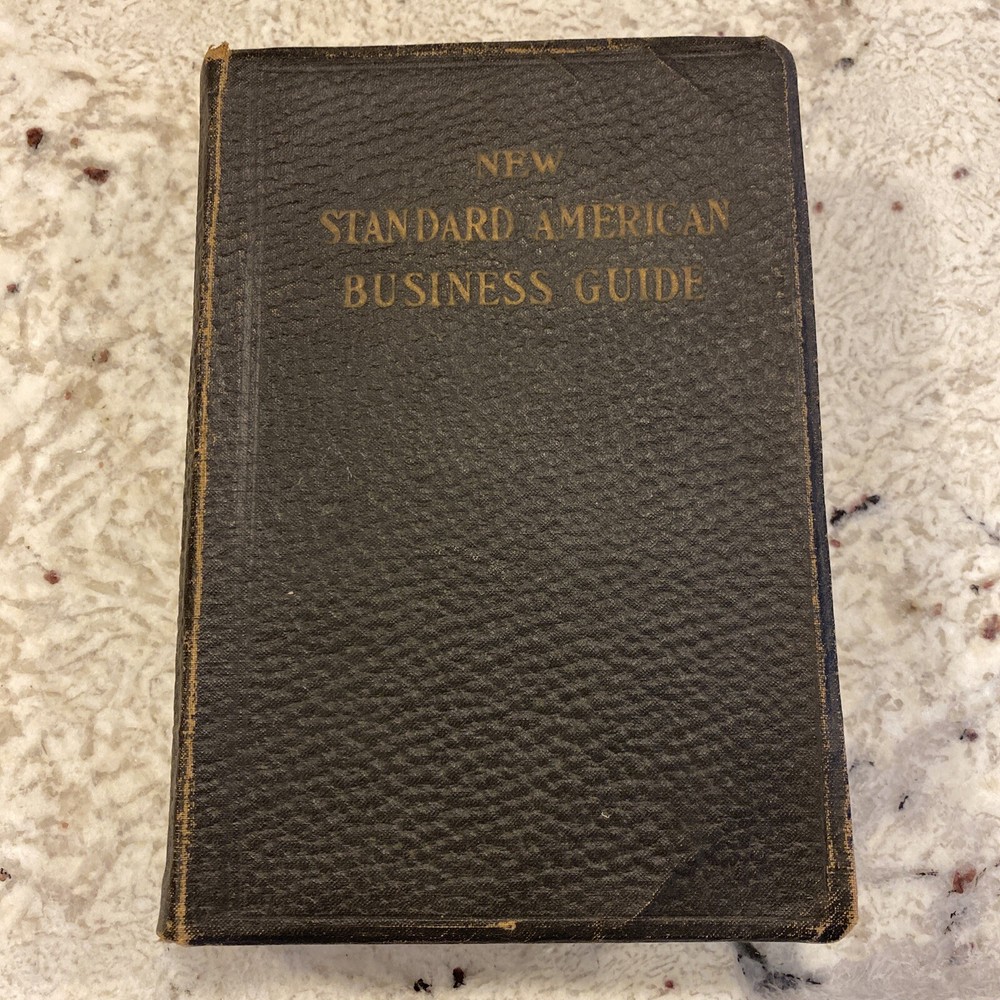 1915 NEW STANDARD AMERICAN BUSINESS GUIDE, LEATHER BOUND by E.T. ROE. In good condition but shows some wear- see photos for details. (C6)