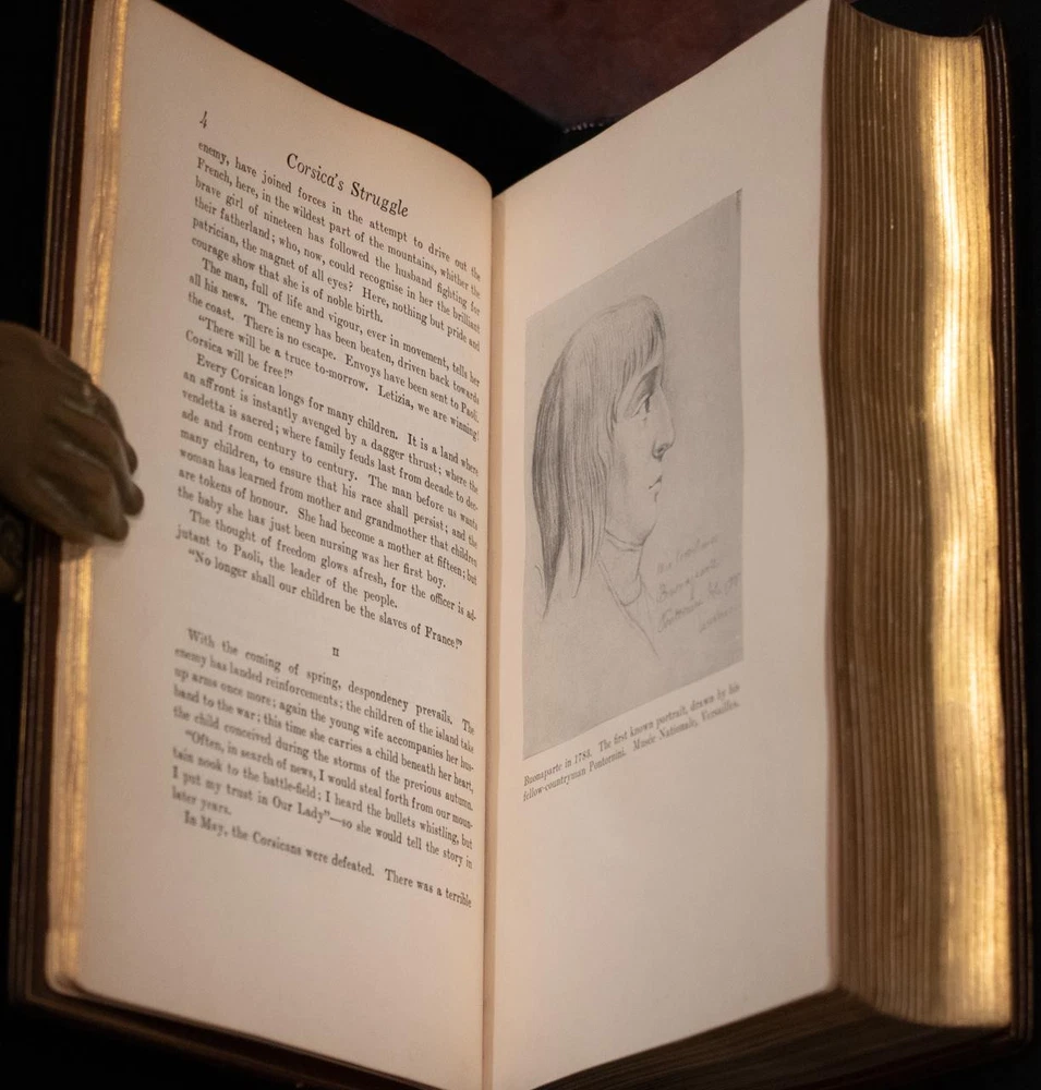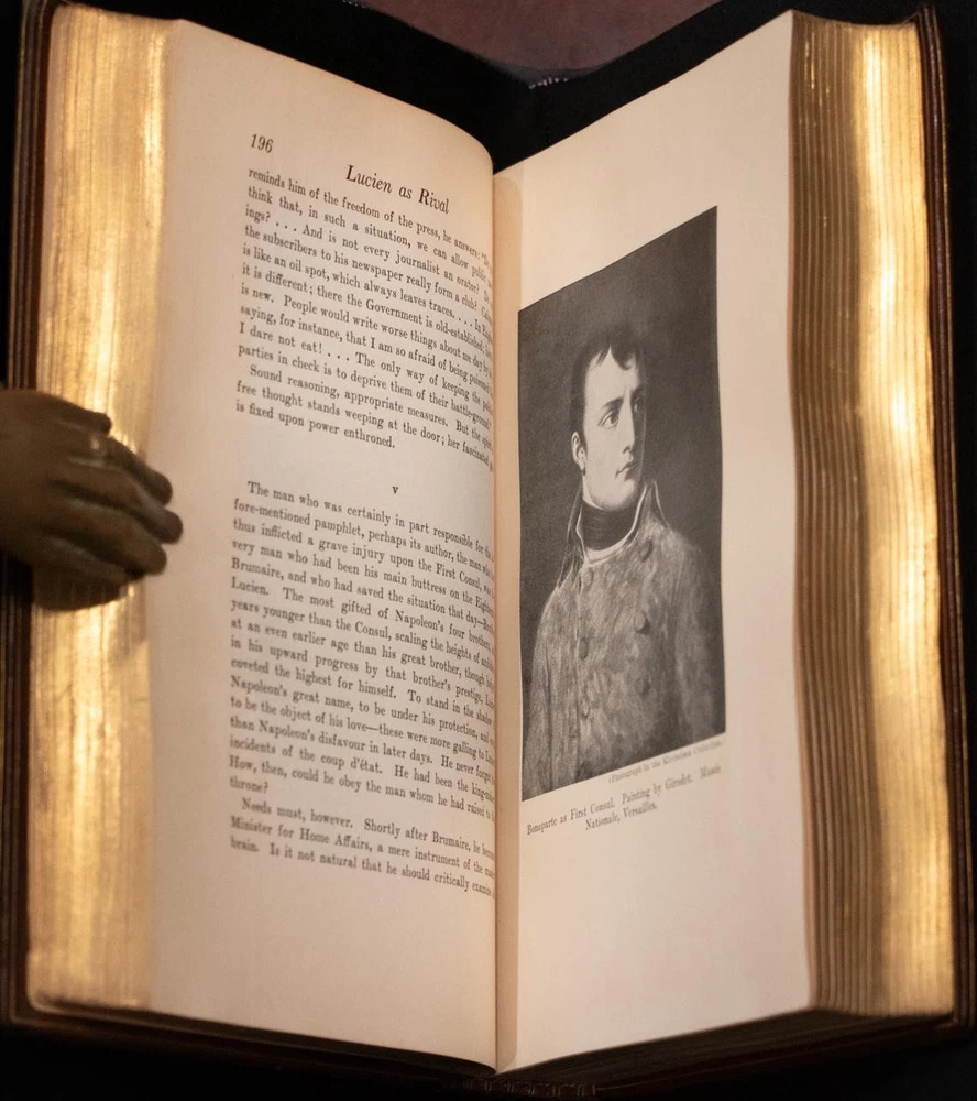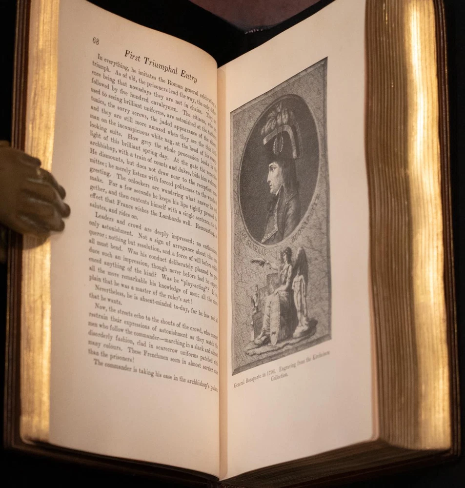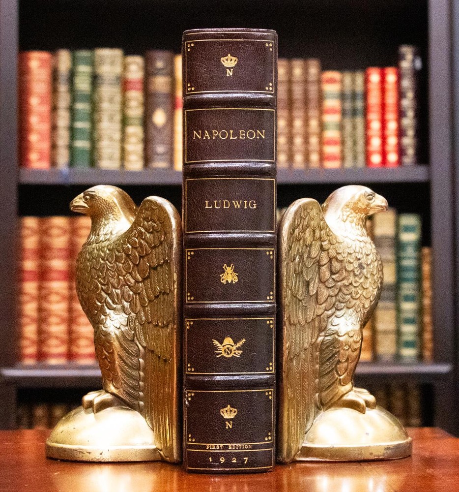 BOOK IS IN NEAR FINE CONDITION BEAUTIFULLY BOUND BY SANGORSKI & SUTCLIFFE IN FULL CRUSHED MOROCCO WITH BRIGHT GILT RULE AND CRESTS TO COVERS, SIX COMPARTMENTS AND FIVE RAISED BANDS TO SPINE WITH BRIGHT GILT DETAILS AND TITLE. BINDING AND HINGES ARE VERY GOOD, MARBLED END PAPERS, PASTE DOWNS AND BRIGHT GILT END PAGES. NO LOOSE OR MISSING PAGES, PAGES ARE BRIGHT AND CLEAN, WITHOUT MARKS AND NO FOXING. ILLUSTRATED, BOOK MEASURES 9”.5x6”.5. FIRST EDITION, 98 YEARS OLD. A BEAUTIFUL EXAMPLE IN SCARCE SANGORSKI & SUTCLIFFE BINDING. 1927 Napoleon by Emil Ludwig Fine Leather Bound by Sangorski & Sutcliffe 1stED 1927 Napoleon by Emil Ludwig Fine Leather Bound by Sangorski & Sutcliffe 1stED Description BOOK IS IN NEAR FINE CONDITION BEAUTIFULLY BOUND BY SANGORSKI & SUTCLIFFE IN FULL CRUSHED MOROCCO WITH BRIGHT GILT RULE AND CRESTS TO COVERS, SIX COMPARTMENTS AND FIVE RAISED BANDS TO SPINE WITH BRIGHT GILT DETAILS AND TITLE. BINDING AND HINGES ARE VERY GOOD, MARBLED END PAPERS, PASTE DOWNS AND BRIGHT GILT END PAGES. NO LOOSE OR MISSING PAGES, PAGES ARE BRIGHT AND CLEAN, WITHOUT MARKS AND NO FOXING. ILLUSTRATED, BOOK MEASURES 9”.5x6”.5. FIRST EDITION, 98 YEARS OLD. A BEAUTIFUL EXAMPLE IN SCARCE SANGORSKI & SUTCLIFFE BINDING. !!!CLICK HERE!!! Visit My eBay Store TO SEE ALL THE BOOKS WE HAVE FOR SALE!!! IF YOU LIKE WHAT YOU SEE THAN SAVE US TO YOUR FAVORITES BY CLICKING HERE. Add me to your Favorite Sellers RARE ANTIQUARIAN BOOKS CAN BE FRAGILE AND NEED TO BE HANDLED WITH CARE. About us: Reagan's Rare Books is a purveyor of Antiquarian books primarily from the 18th and 19th centuries. We love antique books! We search all over the country for the finest rare books, looking for those with beautiful bindings and in great condition so that we can offer you, the customer, a truly rare one of a kind collectible. Paypal Preferred. Please make payment arrangements within 48 hours of winning your auction. We reserve the right to re-list items not paid within 5 days. Shipping *To Insure That Your Package arrives without any Problems , Please Double Check to Make Sure That The Address You Have Selected in eBay Is Correct. All books are carefully bubble wrapped and packed in a box with adequate packing peanuts to prevent any damage during shipment. All books are shipped with delivery confirmation and tracking. Books over $75.00 are automatically insured. RETURNS 100% Satisfaction Guaranteed. Returns accepted for any reason within 30 days of receipt. PLEASE CHECK MY OTHER LISTINGS. POSTING NEW RARE BOOKS DAILY/WEEKLY. Pictures sell! Auctiva offers Free Image Hosting and Editing. 300+ Listing Templates! Auctiva gets you noticed! The complete eBay Selling Solution. Track Page Views With Auctiva's Counter