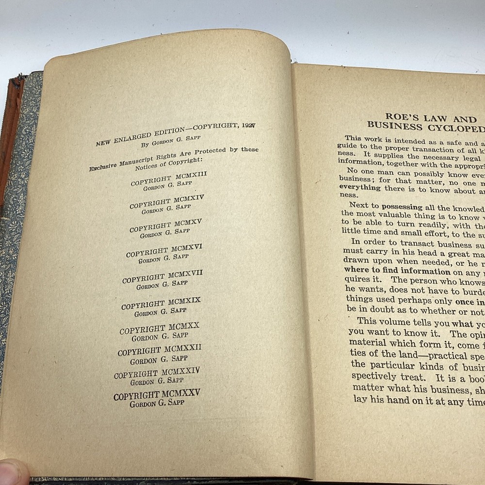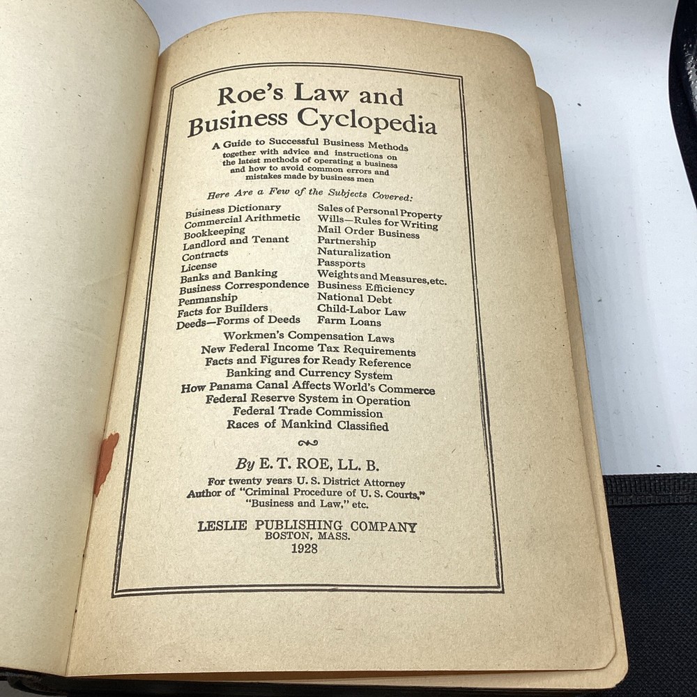 This is a rare and valuable 1928 edition of Roe's Law & Business Cyclopedia, written by E.T. Roe, LL.B. The book is beautifully bound in leather and contains special attributes that make it a sought-after item for collectors. The biography and autobiography subject matter provides readers with an interesting perspective on the business world of North America. The book was published by Leslie Publishing Company in the United States and is an original 1st edition. The language is English and the year printed is 1928. This antique book falls under the categories of Books & Magazines and Antiquarian & Collectible. It is a must-have for any business enthusiast or collector looking to add a valuable piece to their collection. Smoke and pet free household. We combine shipping on multiple orders!!!