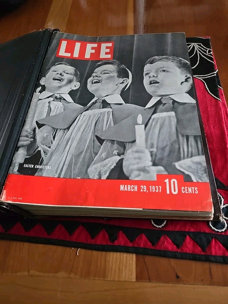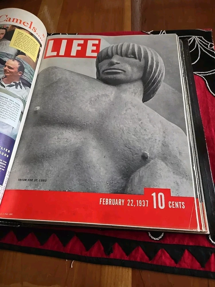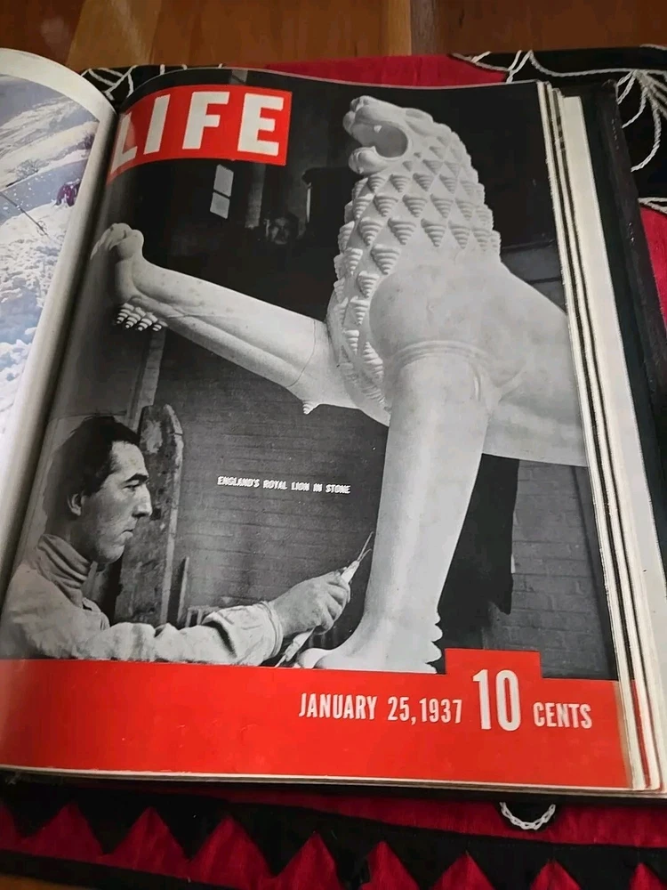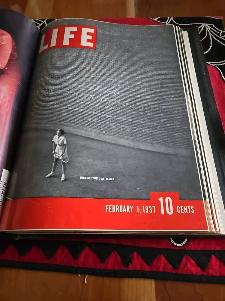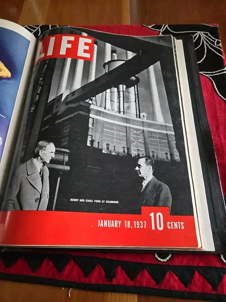This is a vintage 1937 Life Magazine, bound in a leather cover. The content is written in English and covers classic topics. It is an original piece, not a facsimile, and was manufactured in the United States. The magazine is not signed and is a great addition to any collection. The binding is made of high-quality leather and is a beautiful piece. Get your hands on this rare find and add it to your collection today! 10 volumn March-february Well kept