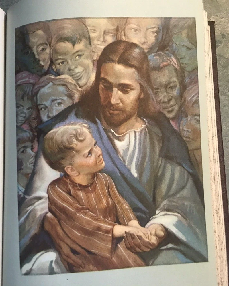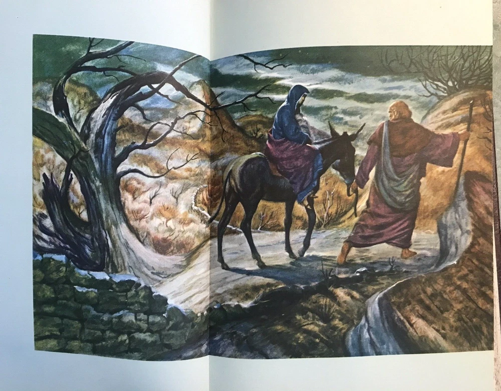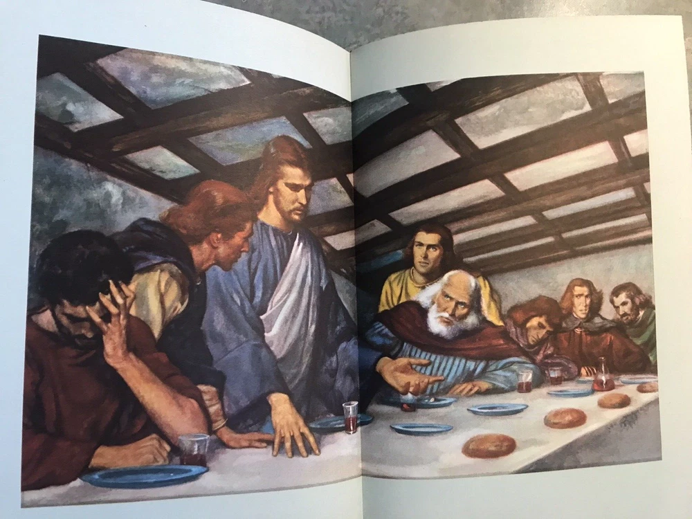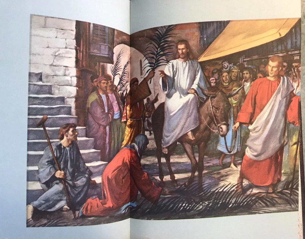 Like new. Excellent condition for its age. Hard cover and leather bound, this book is a beautifully illustrated biography of Jesus Christ. A tale of the greatest life ever lived. Spine intact with no torn pages and all pages clean of any writing. Some slight wear to corners but otherwise like new. Includes 11 colorful paintings by Kenneth Riley. From a non-smoking home. Please examine photos for more condition details before purchase. All sales are final.
