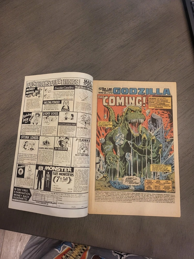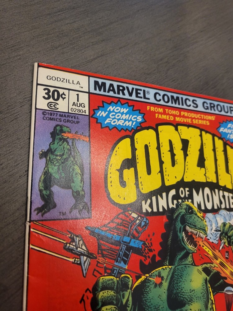 This comic book features the legendary monster Godzilla in his first appearance in the Marvel Universe. Published in 1977, this comic is a must-have for any collector of comic books and memorabilia. The story title is "Godzilla #1 King of the Monsters" and it is a part of the Godzilla series by Marvel Comics. The comic features all the classic elements of a monster story, including destruction, chaos, and epic battles. The issue number is 1 and it is a part of the Bronze Age era of US comics. This particular issue is not signed, but it is a valuable addition to any collection. Get your hands on this classic comic book featuring the iconic monster, without worrying about the item's condition. This issue is in very good condition.