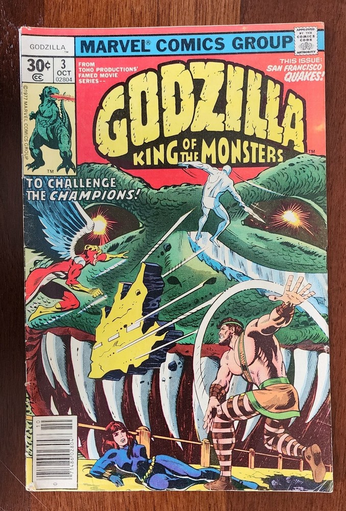 This 1977 Marvel Comics Godzilla King of the Monsters #3 features a classic appearance by the Champions