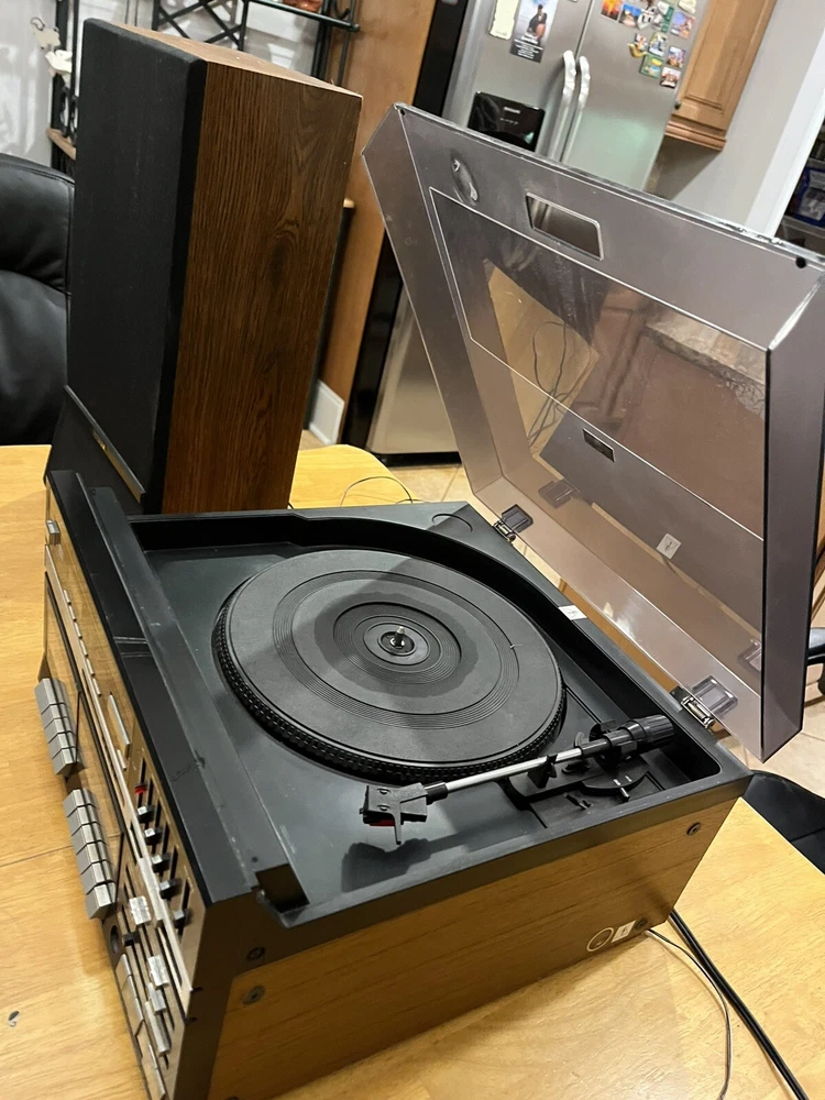 It's a Studio Standard model from the 1980's. The radio and the record player work' however, the cassette deck will eat your tapes. One of the speakers work, and one speaker is missing part of the plug. I will include the 2nd broken speaker in sale, in case you can fix it. Do not have an antennae for it.
