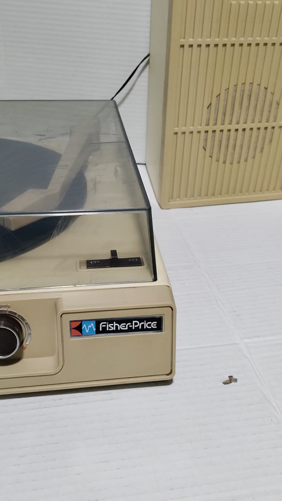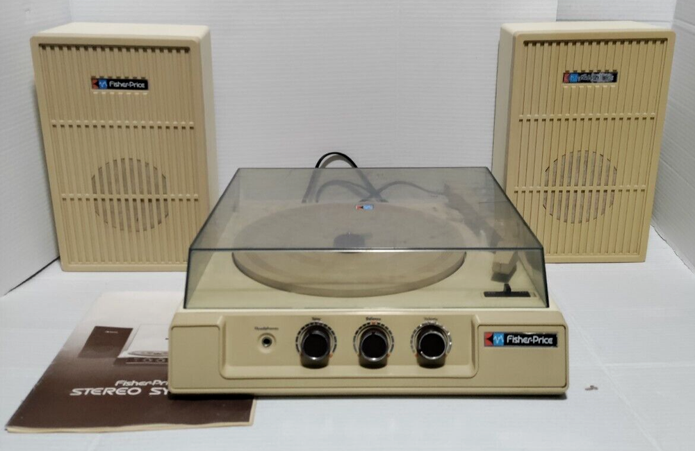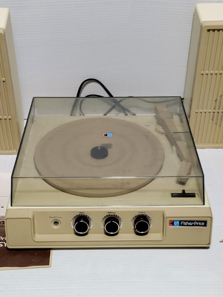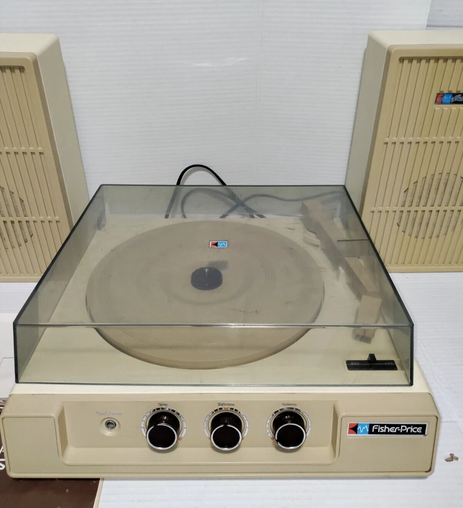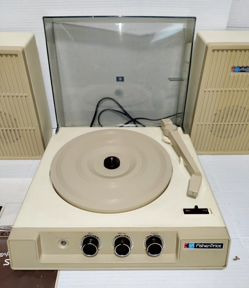 This 1983 Fisher-Price stereo system record player with speakers is a must-have for any vintage toy collector. The recommended age range for this toy is 4+, and it is perfect for children aged 4-7 or adults whom are children at heart. Made in the United States, this Fisher-Price toy is part of the character family and is sure to bring back nostalgic memories. S ee pictures for details! Photos are of actual item, Please inspect the photos carefully. Returns are allowed with Buyer paying for return Shipping. If you have any questions regarding the listing please feel free to contact me. Items come from a Smoke Free home. Please check out my other items for sale! Shipping & Payment: *Once the payment is cleared, I will do my best to ship out promptly. *Buyer is responsible for any extra fees involving customs, duties, taxes, or any other. *The Seller shall not be responsible if item or items are lost, stolen, damaged during transport / shipping, or once delivered. Thank you!