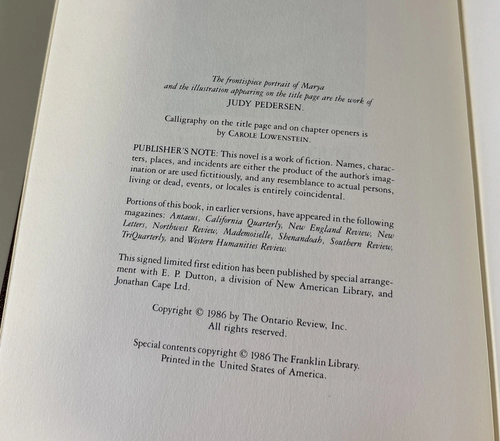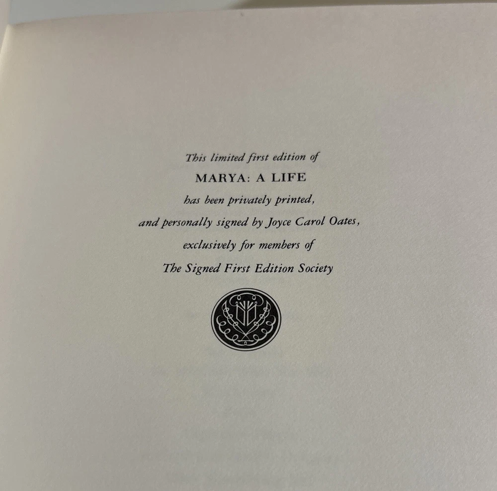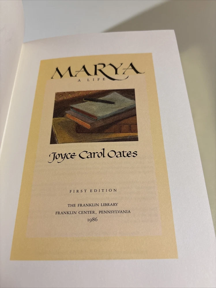 1986 Franklin Library Joyce Carl Oates Marya A Life Signed 1st Edition in great condition. This book was unpacked from purchase in the early 1980s and has been sitting untouched on a bookcase for all these years. Pages were opened for the first time today for photos. Please see all photos for condition. I’m liquidating a large collection of these hard to find books so check back often for more listings.