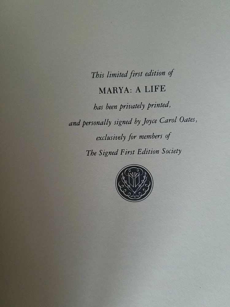 1986 Franklin Library Leather Book Marya A Life by Joyce Carol Oates SIGNED 1ST EDITION. It shows no signs of damage. Please view pictures for details LOCATION B8