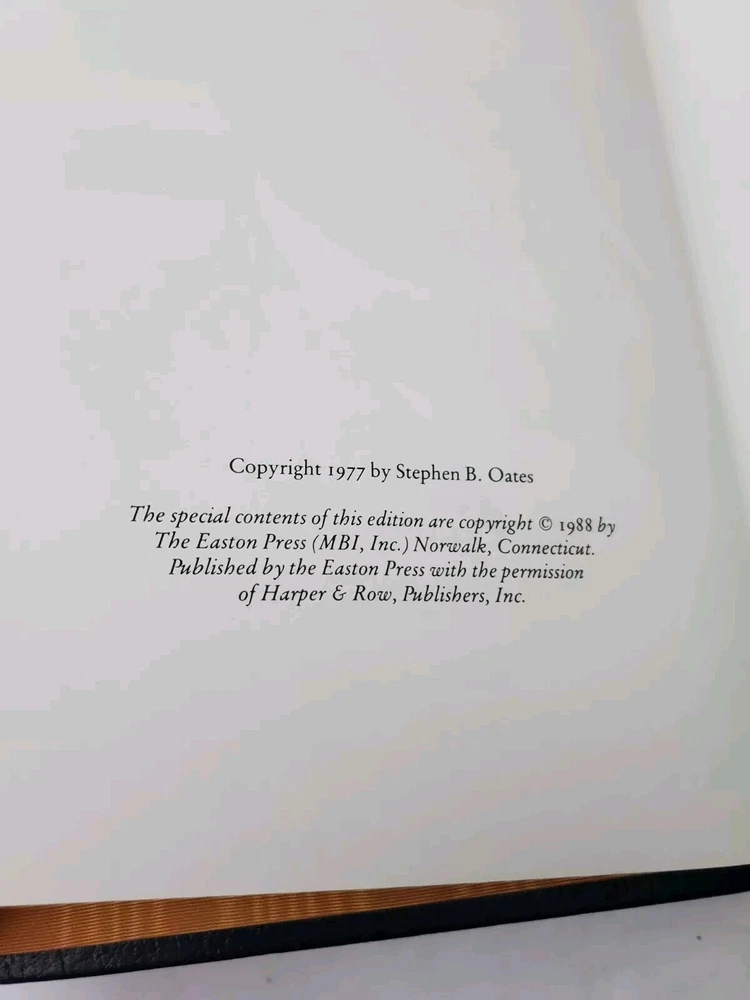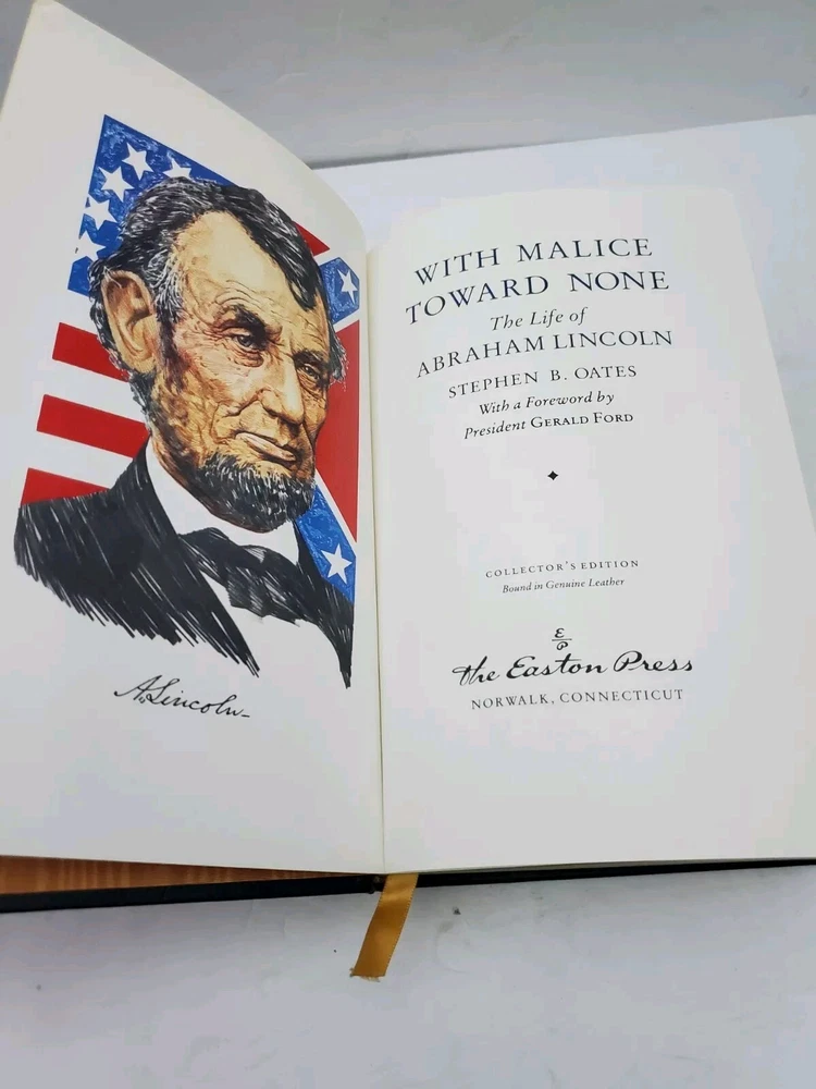 This is a limited edition, illustrated leather-bound book titled "1988, With Malice Toward None .. Abraham Lincoln" by Stephen B. Oates. It was published by Easton Press in 1988 and falls under the category of Books & Magazines as well as Antiquarian & Collectible. The book has been bound in high-quality leather and is in excellent condition. The language of the book is English and it comes with special attributes such as being a limited edition and illustrated. The book covers the historical topic of Abraham Lincoln and falls under the subject of Biography & Autobiography.