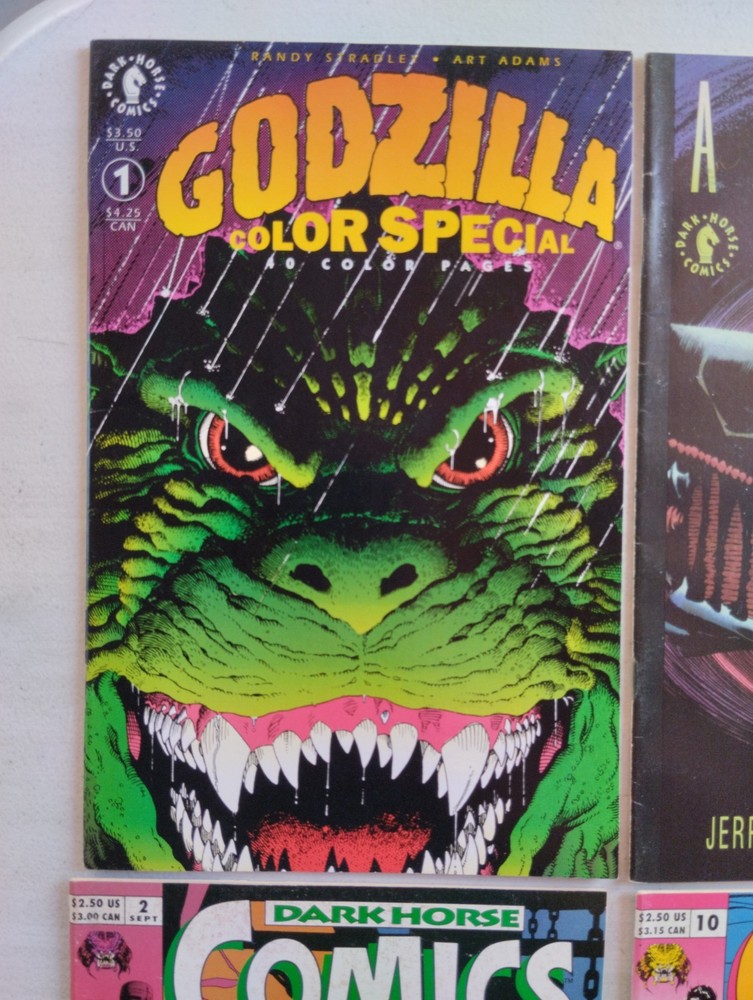 Dive into the thrilling world of Dark Horse Comics with this captivating lot of 4 vintage comic books from the 1990s. Among the titles, you'll find iconic characters such as Godzilla, Aliens, Robocop, and James Bond, each promising a gripping read. These comics are a testament to the Modern Age of comics, presenting a blend of action, monster, and horror & sci-fi genres that cater to a general audience. Each comic book in this mixed lot is a piece of comic book history, published by Dark Horse Comics and presented in a vivid color style. The lot is a great addition to any collector's assortment, bringing together the rich tradition of US Comics. Although graded as 1.5 Fair/Good, these comics hold their allure with enthusiasts and casual readers alike, offering a slice of the expansive Alien universe and more.