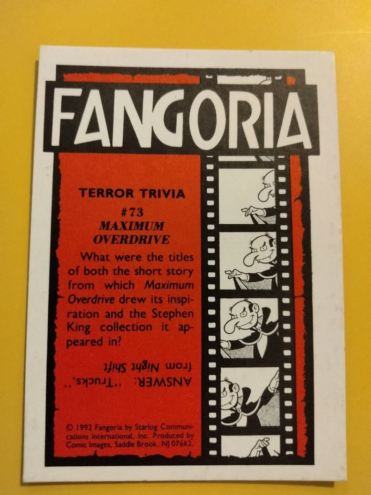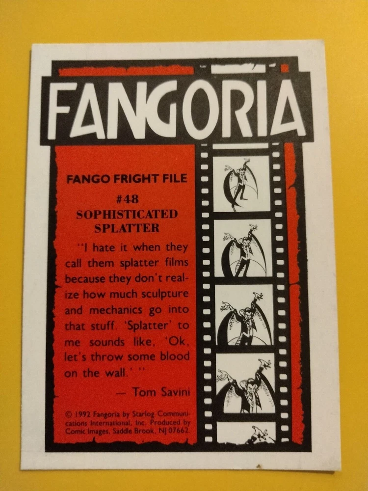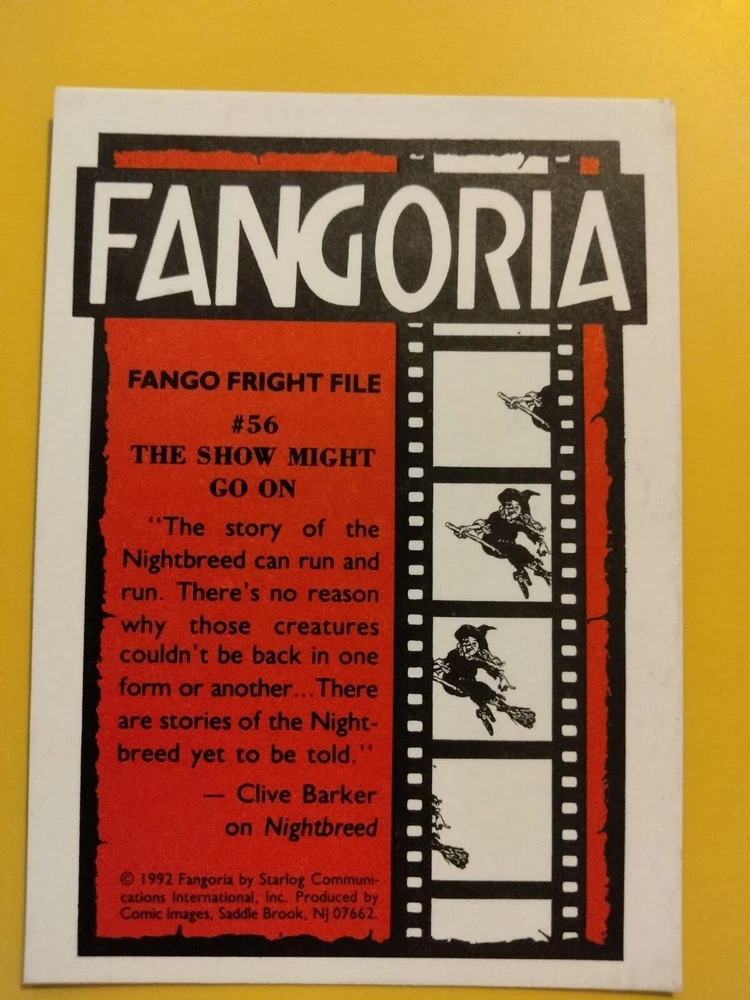 1992 Starlog Communication Inc. Fangoria horror movie/magazine cover trading cards (you pick). Choose your favorite! Cards totaling under $20 will be sent eBay Standard Shipping. Orders totaling over $20 will be sent USPS Ground. FREE SHIPPING