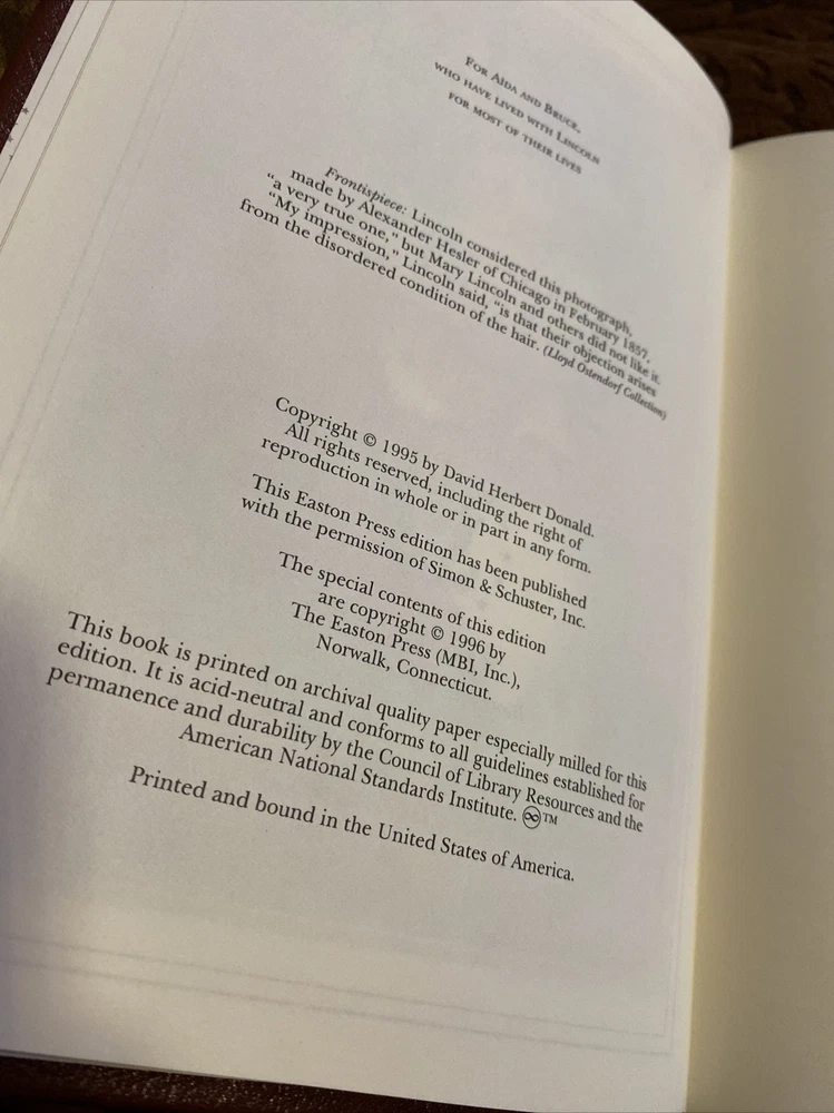 1996 Easton Press LINCOLN by David Herbert Donald Leather Collectors Edition VG. Very good condition other than original owner ex libris inside. Shipped with USPS Media Mail....
