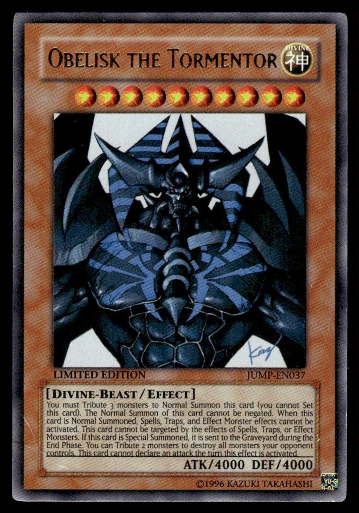 About Me Other Listings Feedback Add to Favorites Contact Me eBay Store Mamacards 1996 Yu-Gi-Oh konami Obelisk the tormentor limited edition No stock photo / These are real scans or pictures Details Description: Obelisk the tormentor Category: Yugioh Year: 1996 Product: Yu-Gi-Oh Set: konami Team: limited edition Dimensions: 3½" x 2¼" SKU: OT B0001 R01 A (48) Shipping Combine shipping: 0.35$ per additional card Listing By Kronocard trading cards software v2.8.4.8