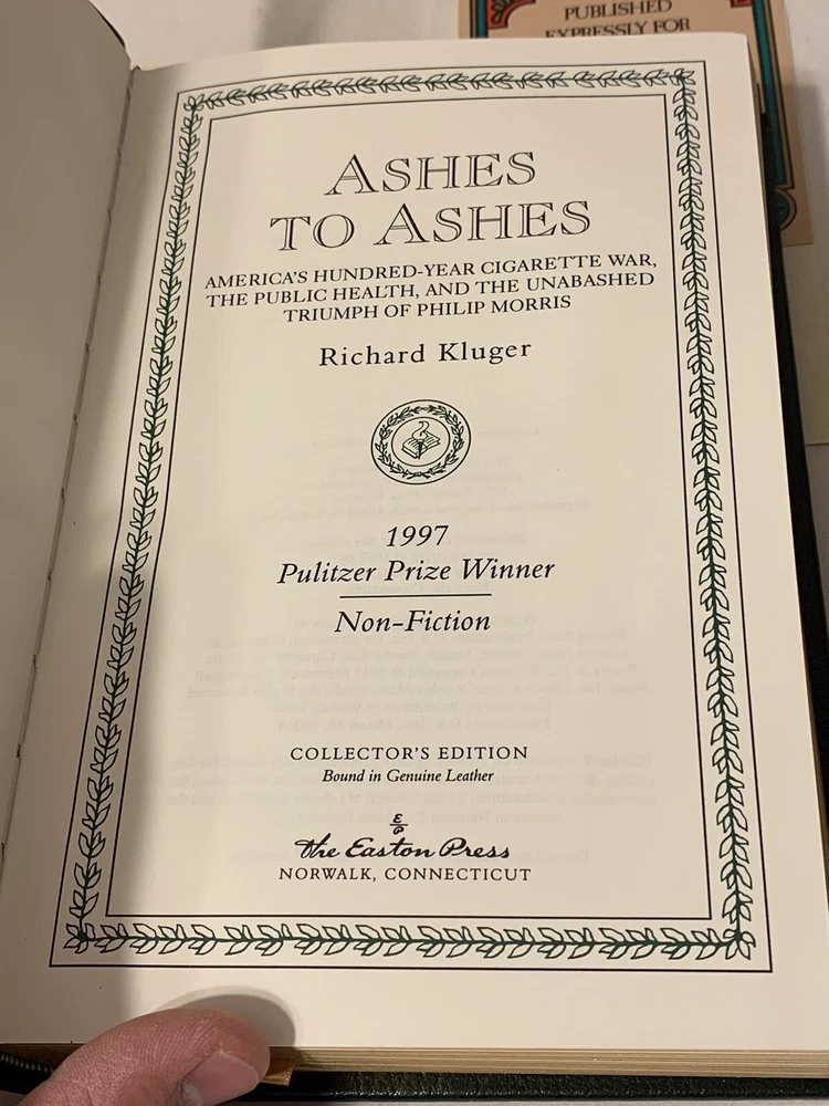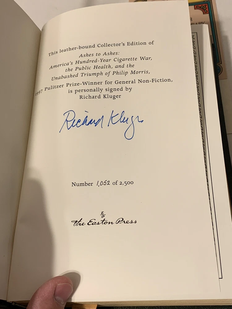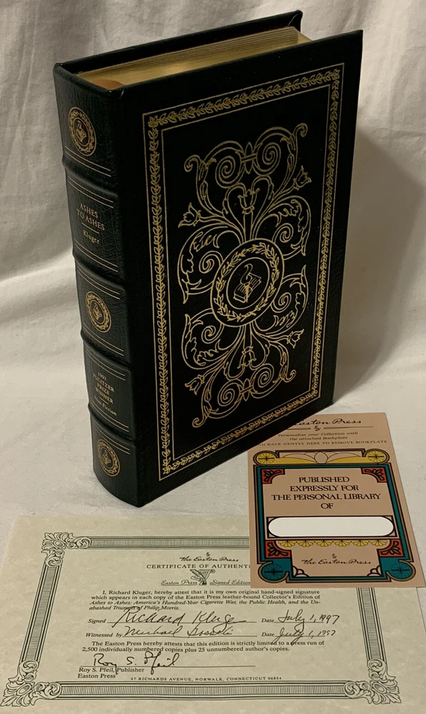 1997 “Ashes to Ashes” Richard Kluger Easton Press SIGNED Limited Leather Edition. #1052 of 2500. Includes original COA. The book is in great condition! Sold as is!