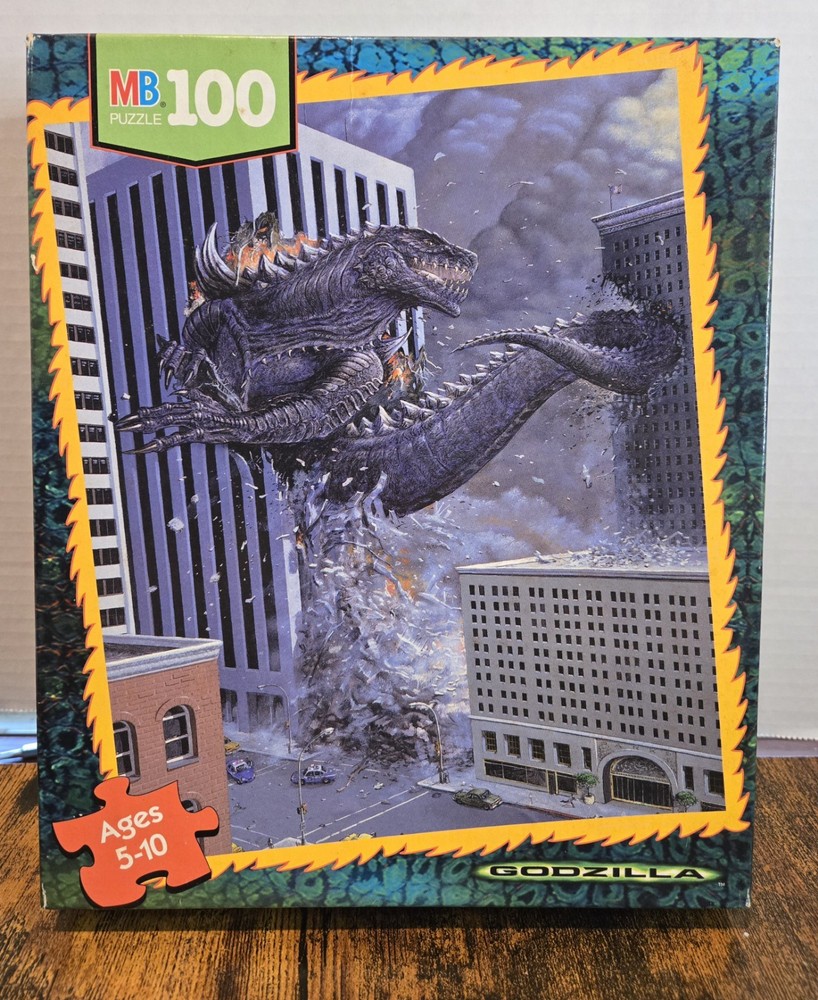 1998 Genuine GODZILLA 100 pc Puzzle MB Milton Bradley 4883-2 Complete 12.5”x 15” Good Condition. Smoke Free Home....