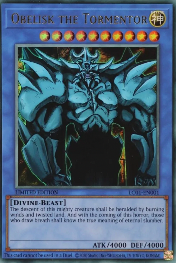 This NM Obelisk the Tormentor Ultra Rare is a must-have for collectors! The card arrived in perfect condition, just as described. The artwork is stunning, and the Ultra Rare finish makes it stand out. Shipping took a bit longer due to customs, but it was worth the wait. Seller was professional and responsive—highly recommend for Yu-Gi-Oh! enthusiasts looking for a rare gem!