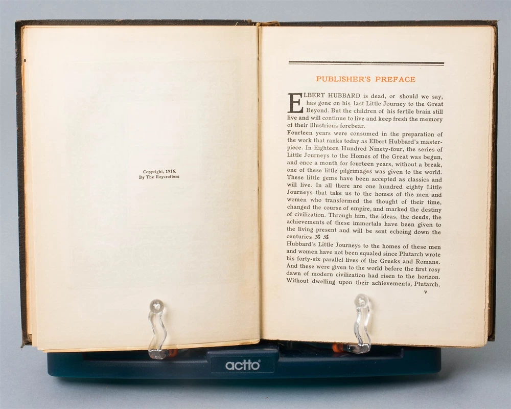 Elbert Hubbard II, Little Journeys to the Homes of the Great Volume I (1): Good Men and Great First (1st) Leather-bound Memorial Edition Fifteen Portrait Plates, Rough Edges, Gilt Top First Printing by the Roycrafters, New York for W.C. Balmat, D.D.S. William H. Wide & Co. Publishing, New York, 1916 Good Antique Condition W1