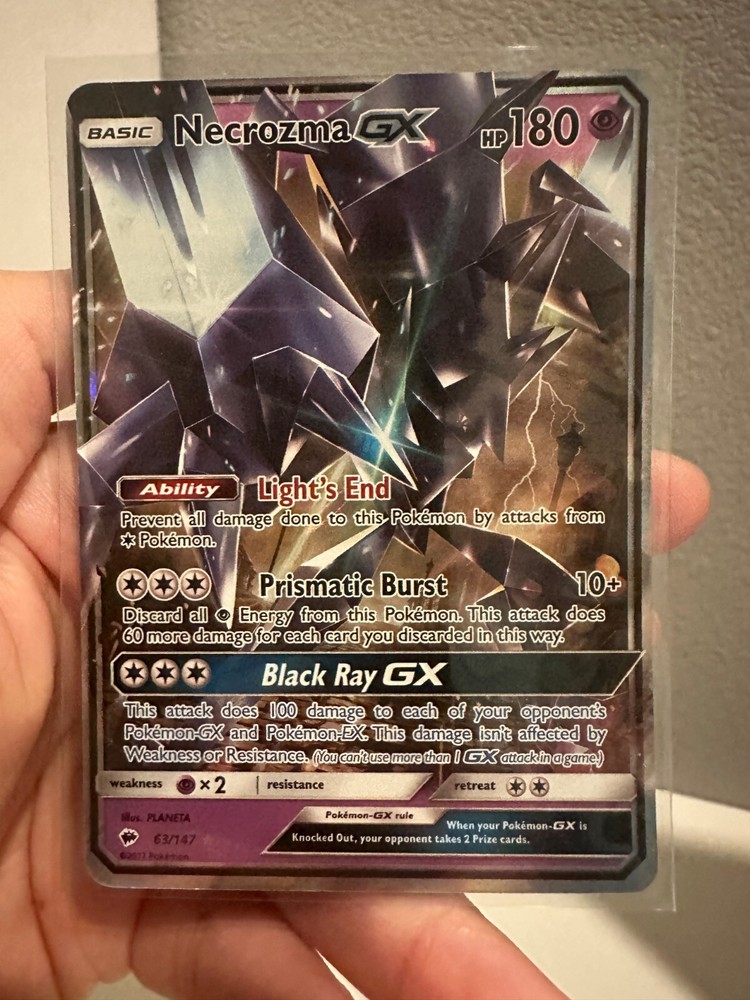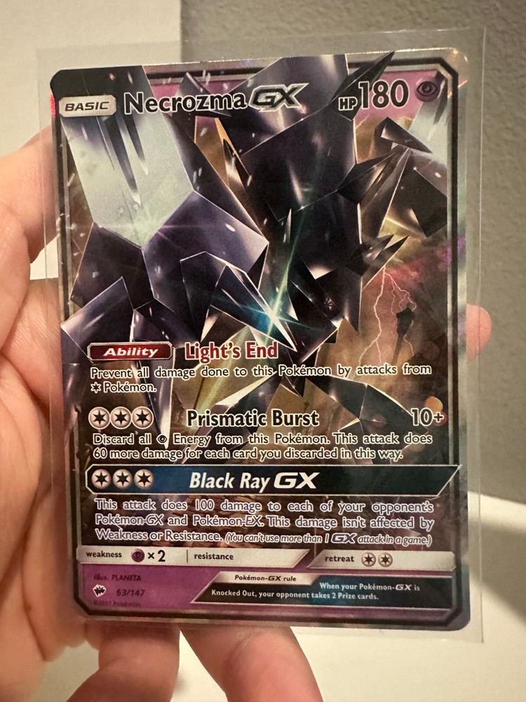 1x Necrozma GX 63/147 NM Ultra Rare Burning Shadows Pokemon TCG NM 0930#226-227 Please see images for a better idea of condition. Shipped securely in a shipping shield top loader and sleeved.