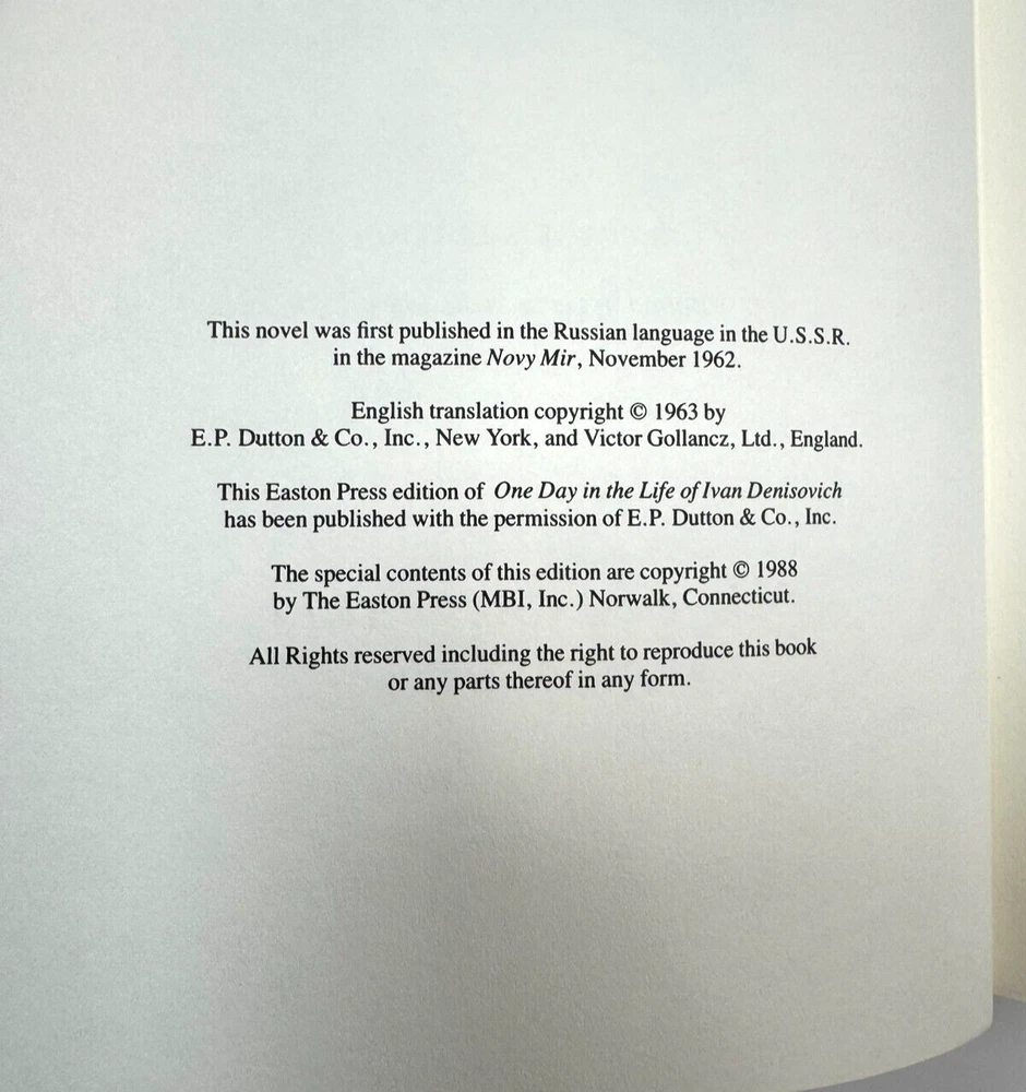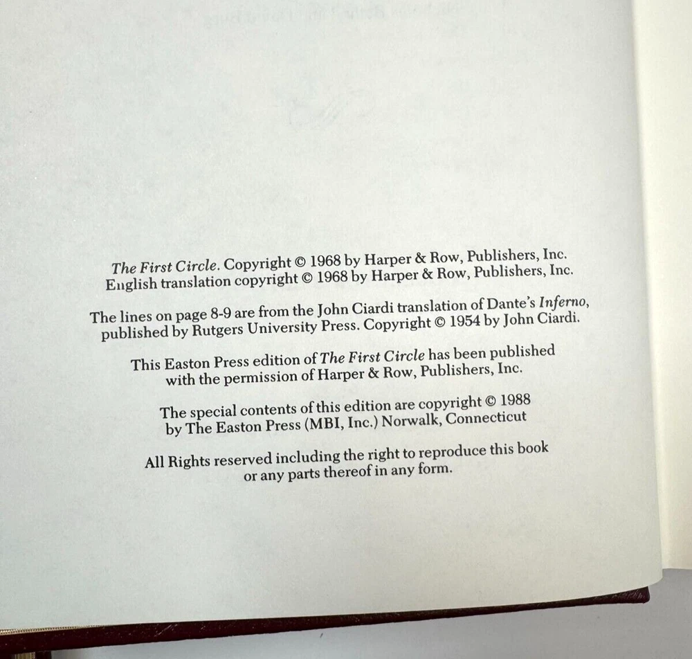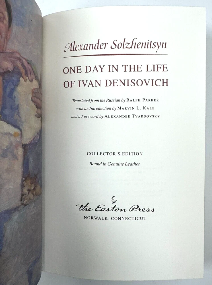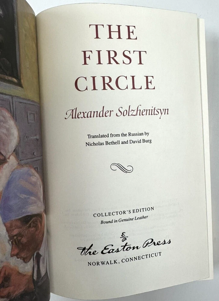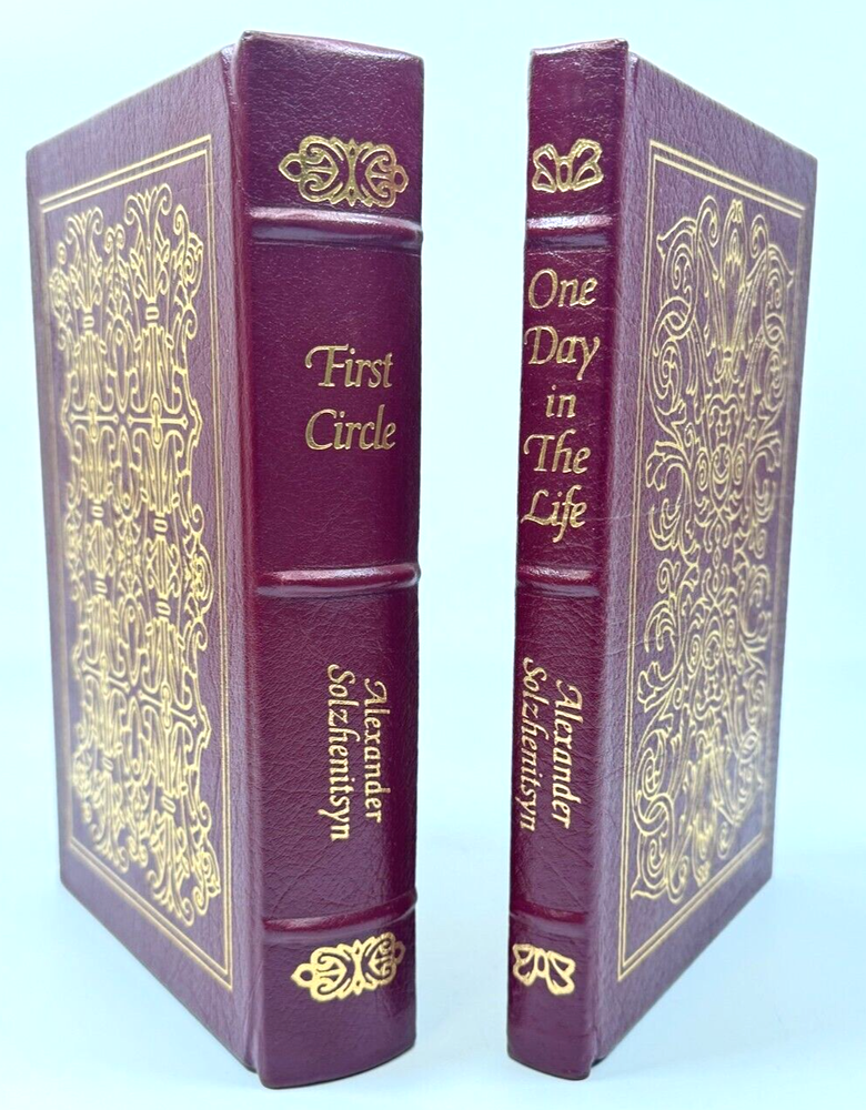 2 Easton Press Leather Alexander Solzhenitsyn Books: One Day In The Life; First Circle These books are in very good condition. The pictures are a part of the description. See all pictures for condition before purchase. Additional photos available upon request.
