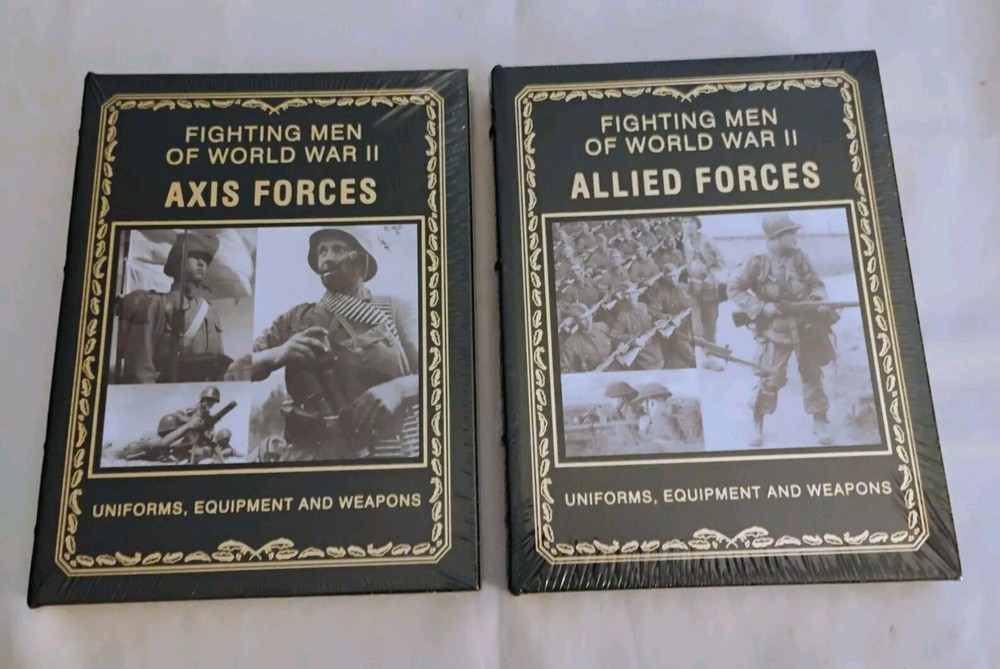 2 Fighting men of world war II leather bound Chartwell / Easton press brand new sealed books --------------------------------------------------------------------------------------------------------------------------------------------------------------------------------- 1) Allied forces uniforms, equipment and weapons 2) Axis forces uniforms, equipment and weapons --------------------------------------------------------------------------------------------------------------------------------------------------------------------------------- From a 100% smoke and pet free environment. ====================PLEASE SEE PICTURES OF ACTUAL ITEM YOU WILL RECEIVE==================== PLEASE CONTACT ME WITH ANY QUESTIONS OR CONCERNS YOU MAY HAVE ABOUT ITEM. Always shipped safely and with care. Please see my store for more available items