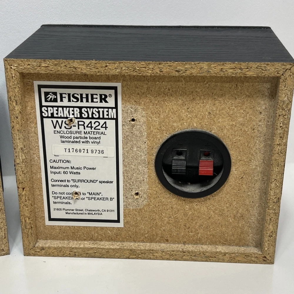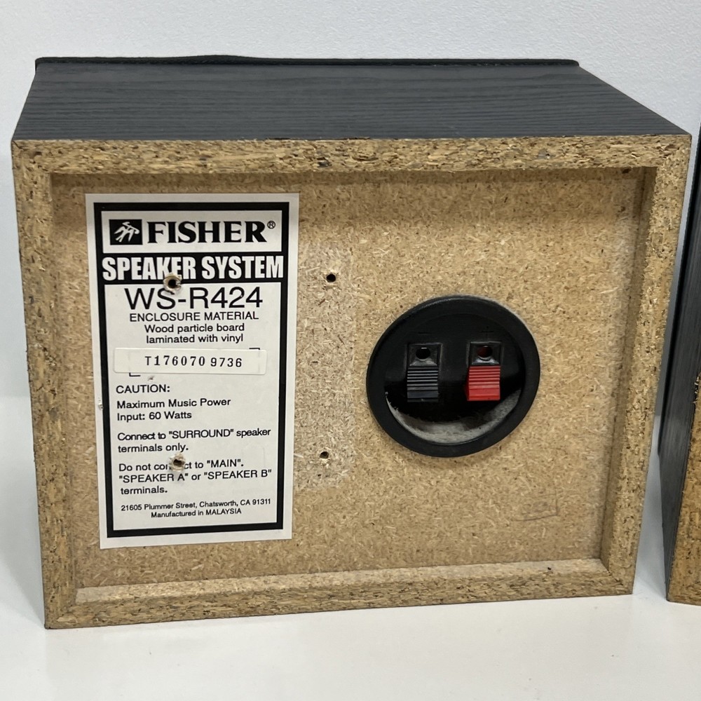 2- Fisher WS-R424 Speaker System, 60 Watts, LEFT & RIGHT Black....