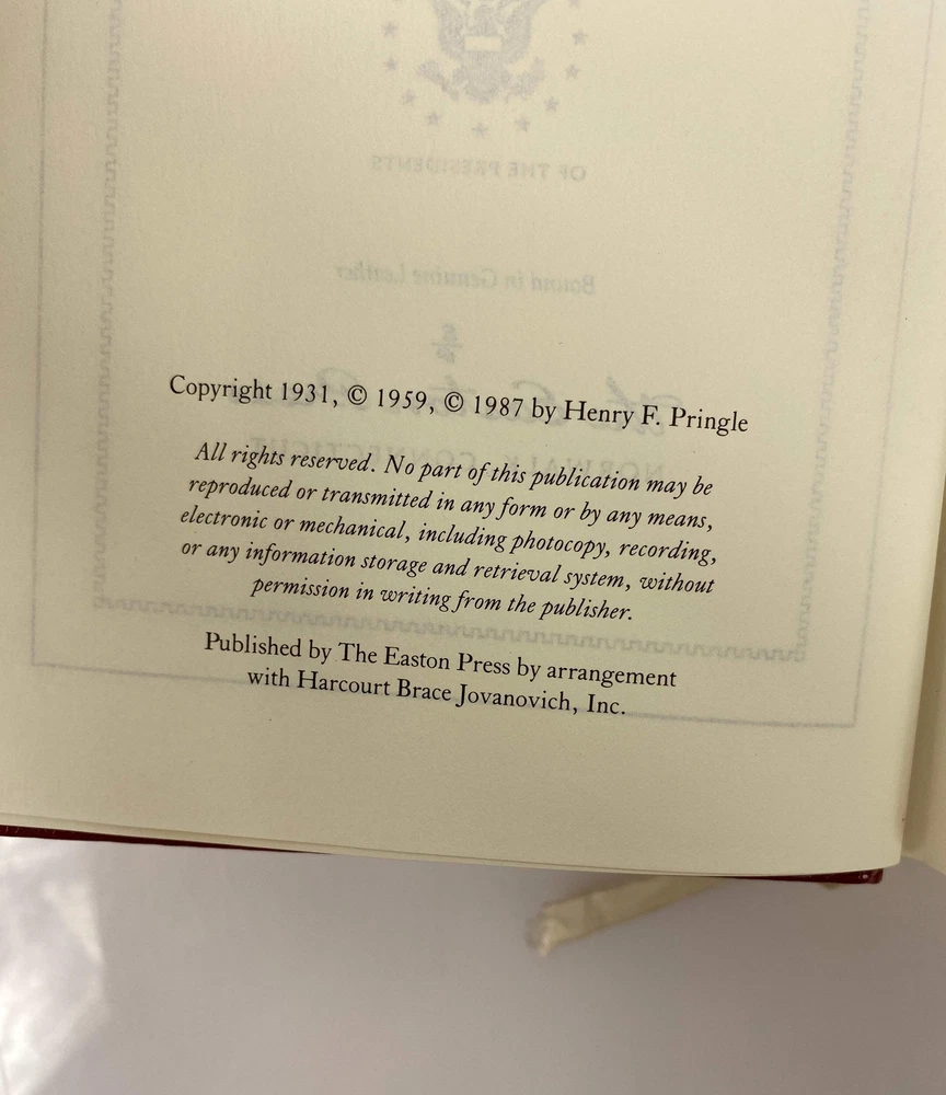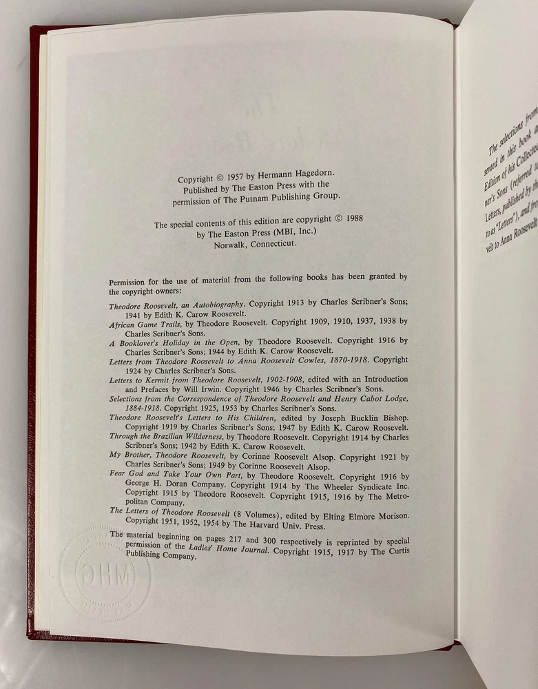 2 Volumes: Theodore Roosevelt A Biography/The TR Treasury Easton Press Leather Item Details: Title: Theodore Roosevelt: A Biography Author: Henry F. Pringle Publisher: The Easton Press Copyright: 1987 Edition: Special Easton Press Edition Title: The Theodore Roosevelt Treasury Compiled By: Hermann Hagedorn Publisher: The Easton Press Copyright: 1988 Edition: Special Easton Press Edition Condition: Books are good condition Rubbing and scuffing along edges resulting in loss of material Gilded edges with some rubbed off Book plates on front pastedowns Embossing on front free endpaper Pages are clean and bright Bindings are secure Fraying to ribbon bookmarks 2 Volumes: Theodore Roosevelt A Biography/The TR Treasury Easton Press Leather Item Details: Title: Theodore Roosevelt: A Biography Author: Henry F. Pringle Publisher: The Easton Press Copyright: 1987 Edition: Special Easton Press Edition Title: The Theodore Roosevelt Treasury Compiled By: Hermann Hagedorn Publisher: The Easton Press Copyright: 1988 Edition: Special Easton Press Edition Condition: Books are good condition Rubbing and scuffing along edges resulting in loss of material Gilded edges with some rubbed off Book plates on front pastedowns Embossing on front free endpaper Pages are clean and bright Bindings are secure Fraying to ribbon bookmarks × × × × × × × × × × × × × × × × Buy now and save! Tell a friend Visit store Watch now Postage info Click the Postage tab above the listing description for more info Click the Postage tab above the listing description for more info! Additional delivery notes PICK UP OPTION Our items are available for local pickup. PAYING VIA PAYPAL We accept PayPal on our all our items so you can shop with confidence. Simple choose the PayPal option when proceeding through the checkout. Additional Information No additional information at this time Ask seller a question You might also like Dell 0UN441 PowerEdge P1950 1U Rapid Versa Rail Kit NEW Nike Green & White Reversible Basketball Jersey Men's Size 2XL Windows Vista Business 32-Bit Re-Installation DVD Windows Vista Business 32-Bit SP1 Re-Installation DVD Contact To contact our Customer Service Team, simply click the button here and our Customer Service team will be happy to assist. Ask seller a question © MSU Surplus Store Postage Click the Postage tab above the listing description for more info Payment Accepted Payment Methods PayPal Returns Returns are accepted Items must be returned within 30 days of the auction ending Buyer will pay for return shipping. eBay integration by