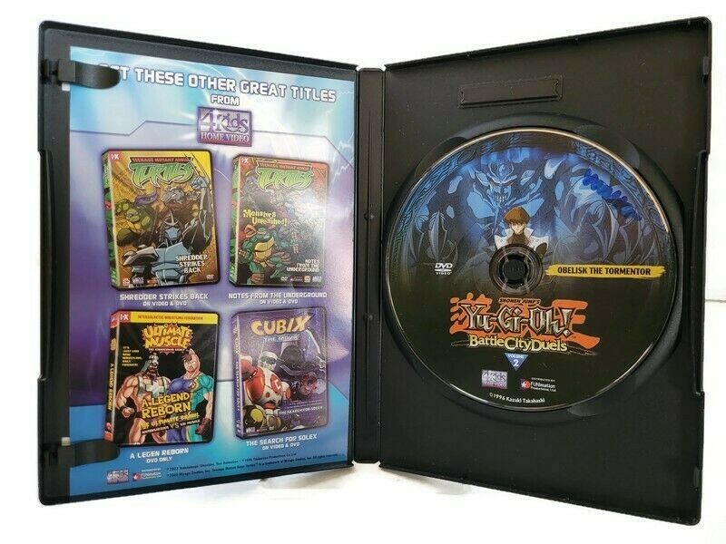 2 Yu-Gi-Oh! DVDs ~ Friends 'Til the End and Obelisk the Tormentor - Tested. This is a lot of 2 Yu-Gi-Oh! pre-owned dvd's. The dvd's and dvd cases are in good condition with minimal marks. The cases show wear on the covers, cover corners and edges, and spine. The Obelisk the Tormentor dvd has a few marks on the dvd surface. The Friends til the End dvd is almost free of marks on the dvd surface. The dvd cases hold the dvd's and close normally. The dvd's were both played and tested, the menus were accessed randomly and both appeared to function normally. Please refer to the photographs for information. The dvd's will be shipped via media mail purchased by the buyer. Delivery can take two to eight business days but may take longer. Thank you.