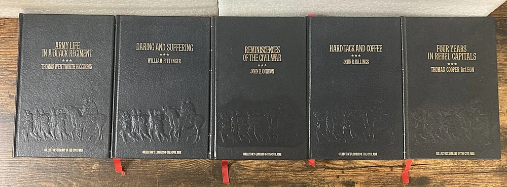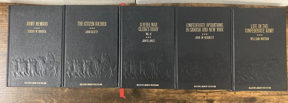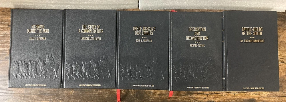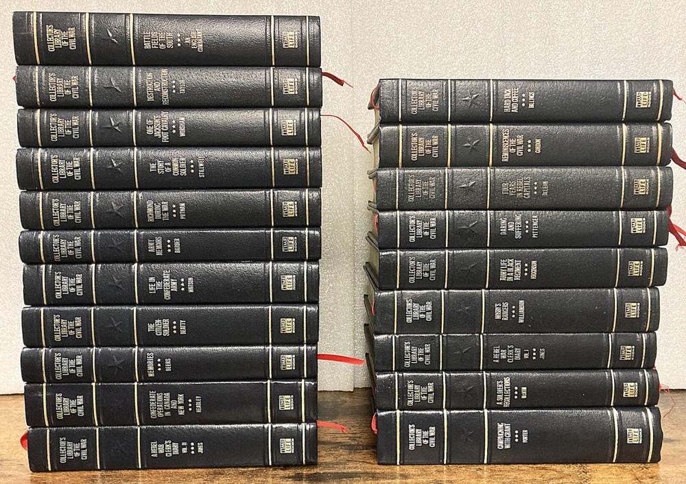 20 Vol. Collector's Library of the Civil War Time Life Books HC -No DJ Very GOOD Condition Collector's Library of the Civil War Published by Time Life Books, Many authors Included in this listing 20 volumes of the 30-volume set: These are 1983 /1984 reprints of original FIRST Editions first-hand accounts of the war, which were published between 1864 and 1912. Leather bound, dark blue, all edges of the text block are gilt edged and still shiny ! Each has sewn-in red satin bookmarks, some still tucked as if the volume was never read. Many titles have one-page inserts introducing the title, and also 'Collector's Library of the Civil War' bookplates, detached and unsigned. These items were/are probably part of a subscription package from Time Life. 1 Army Life in a Black Regiment by Thomas Higginson 2 Army Memoirs by Lucius Barber 3 Battle-Fields of the South , from Bull Run to Fredericksburg by English Combatant 4 Campaigning with Grant by Horace Porter 5 The Citizen-soldier , or, Memoirs of a Volunteer by John Beatty 6 Confederate Operations in Canada and New York by John W. Headley 7 Daring and Suffering by William Pittenger 8 Destruction and Reconstruction : Personal Experiences of the Late War by Richard Taylor 9 Four Years in Rebel Capitals by Thomas Cooper Deleon 10 Hardtack and Coffee : The Unwritten Story of Army Life by John Davis Billings 11 Life in the Confederate Army by William Watson 12 Memories: A Record of Personal Experience and Adventure During Four Years of War by Fannie A. Beers 13 Mosby's Rangers: a record of the operations of the Forty-third Battalion Virginia Cavalry , from its organization to the surrender, from the diary of a private, supplemented and verified with official reports of federal officers and also of Mosby; with personal reminiscences, sketches of skirmishes, battles and bivouacs, dashing raids and daring adventures, scenes and incidents in the history of Mosby's command ... Muster rolls, occupation and present whereabouts of surviving members by James Joseph Williamson 14 One of Jackson's Foot Cavalry by John H. Worsham 15 A Rebel War Clerk's Diary-Vol I by John B. Jones 16 A Rebel War Clerk's Diary at the Confederate States Capital: Vol 2 (Collector's Library of the Civil War) by John B. Jones 17 Reminiscences of the Civil War by John Brown Gordon 18 Richmond During the War: Four Years of Personal Observation by Sallie B. Putnam 19 The Story of a common soldier of army life in the Civil War, 1861-1865 by Leander Stillwell 20 A Soldier's Recollections: Leaves from the Diary of a Young Confederate; With an Oration on the Motives and Aims of the Soldiers of the South by Randolph H. McKim CONDITION: USED Very Good / Good condition. Hardcovers, no dustjackets as issued. Spines /Boards are clean and straight with sharp corners, not bumped. Dark blue leather boards have gilt lettering on front boards and spines have gilt lines/ white lettering which is still bright. Bindings tight and like new. Page edges are bright and clean, gilt edged, certainly not remainder marked. Text pages appear clean, unmarked and complete. No odor. Please review all photos. Dimensions each book: 8.5” (H) x 6” (W) Will be shipped in one box. (Shipping approximately 37 lbs. total weight) Free local pick up can be done at our Sacramento, California store 9am to 3pm, Wednesdays, Fridays and Saturdays. Items available three days after payment is received. Pickup must be pre-arranged. Pickup policy as per eBay in 2025 requires buyer provide a "confirmation number" to seller prior to allow pickup. International Buyers - Please Note: International shipping is with eBay’s Global Shipping Program only. Import duties, taxes, and charges are not included in the item price or shipping cost. These charges are the buyer's responsibility. Please check with your country's customs office to determine what these additional costs will be prior to bidding or buying. Please visit the Sacramento Book Den eBay store for other great books. Click here for the Sacramento Book Den eBay store All proceeds go to the Sacramento Public Library. Thank you for your consideration of this Lot of 20 Collector's Library of the Civil War Time Life Books HC -No DJ Very GOOD Condition Locator: 26594TW WH143