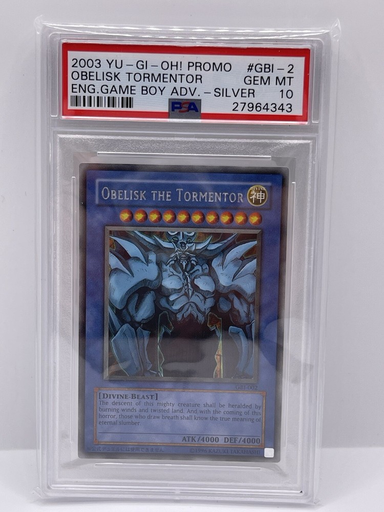 2003 Obelisk the Tormentor GBI 002 Secret Rare Yu-Gi-Oh! Card PSA 10 Gem Mint. Condition is Graded. Shipped with USPS Ground Advantage....