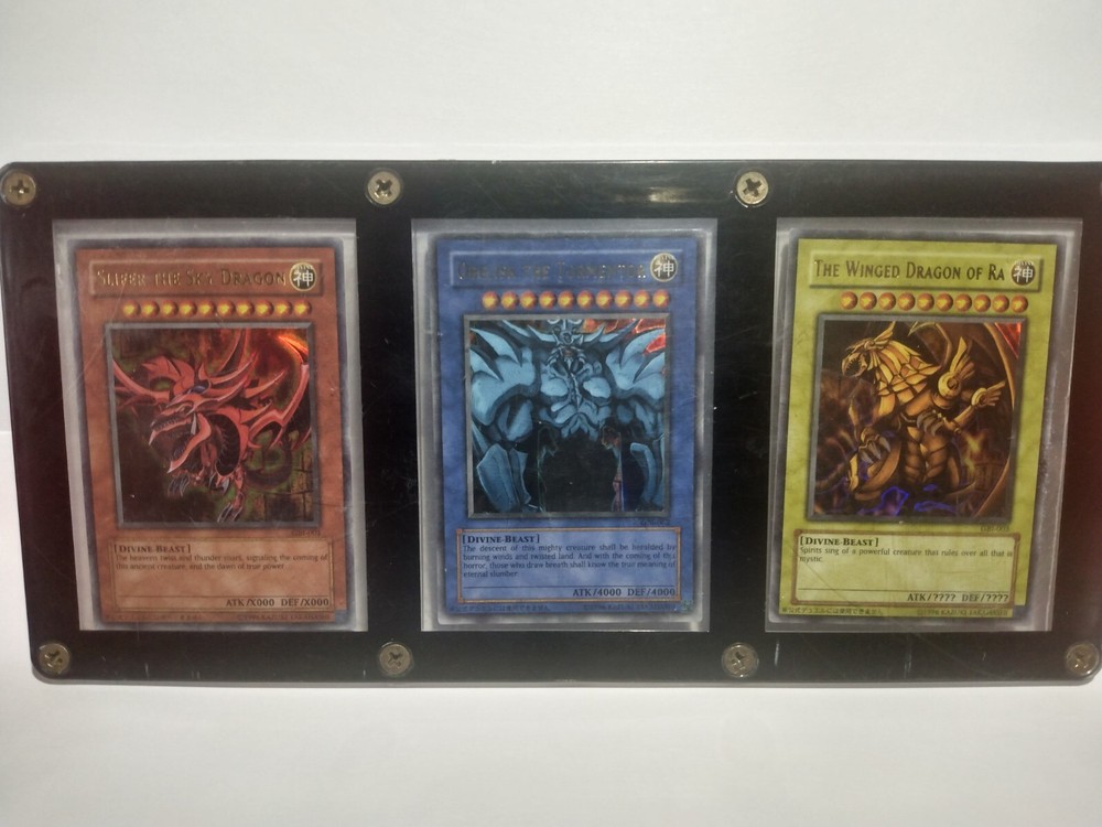 2003 YUGIOH GBI-001 SLIFER,OBELISK GBI-002,RA GBI-003, SECRET RARE. Acrylic case has scratches, but cards are in excellent condition within clear sleeves inside casing. Look at photos for best description, feel free to ask any questions via message.