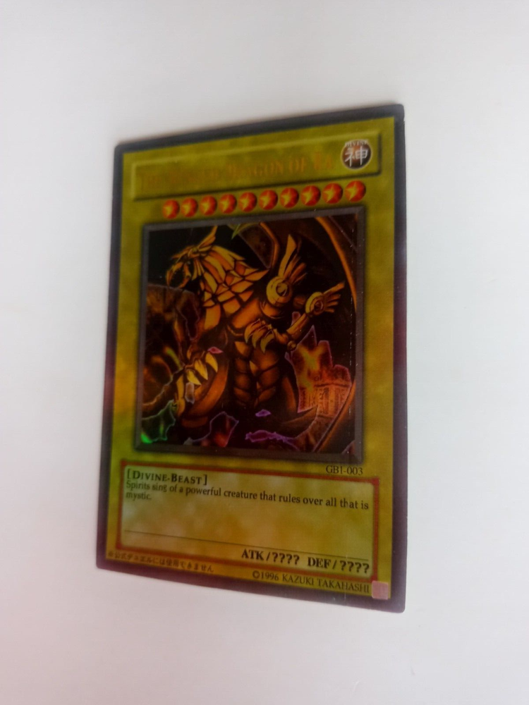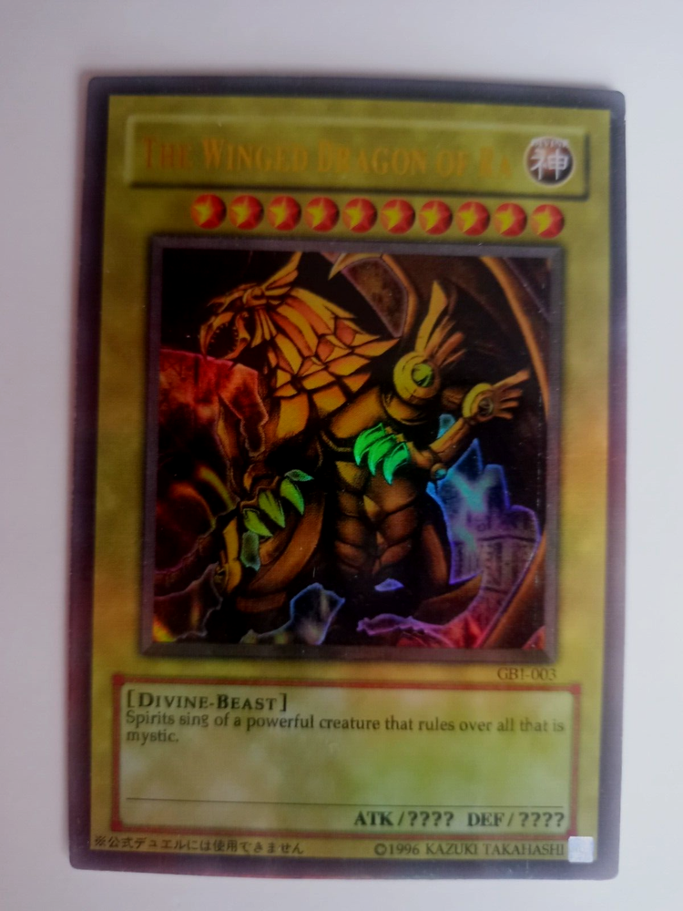 2003 YU-GI-OH The Winged Dragon Of RA GBI-003 Promo Foil (Note: There is a factory light scratch on the front top left edge of the border) Card is excellent to near mint condition and unused in the game Please refer to the pictures for condition Addition auction won will be extra $0.50 per item on top of the first shipping fee. All US buyer will be ship it out by USPS with tracking. Thank You