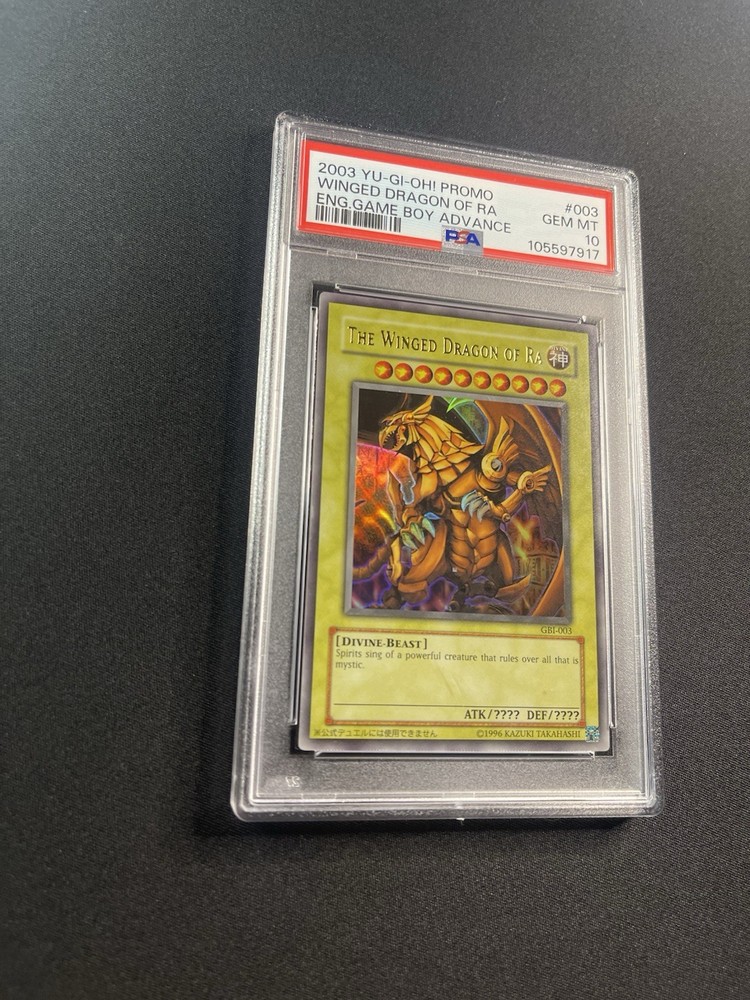Elevate your Yu-Gi-Oh! TCG collection with the legendary Winged Dragon Of Ra, a prized addition from the iconic - Yugi - set. This Ultra Rare GBI-003 card is not only a powerhouse for gameplay but also a gem for collectors, showcasing the intricate artwork and strategic prowess of one of the series' most beloved cards. Manufactured in 2003, it captures the essence of the early days in the Yu-Gi-Oh! universe. The Winged Dragon Of Ra comes professionally graded with a perfect 10 GEM MINT rating, ensuring its top-notch quality and preservation. Its unique SKU, 186556-B30-027, confirms its authenticity and rarity within the game's expansive lore. For fans and collectors alike, this card represents the pinnacle of Yu-Gi-Oh! TCG history and is a testament to the game's enduring legacy.
