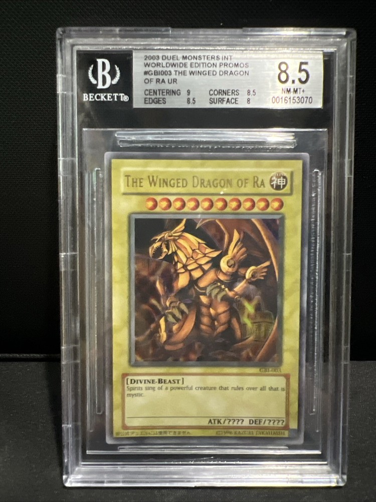 2003 YU-GI-OH Winged Dragon of Ra Ultra Rare #GBI-003 BGS 8.5 Near Mint-Mint. Condition is Graded. Shipped with USPS Ground Advantage. You will receive the exact card shown in images.