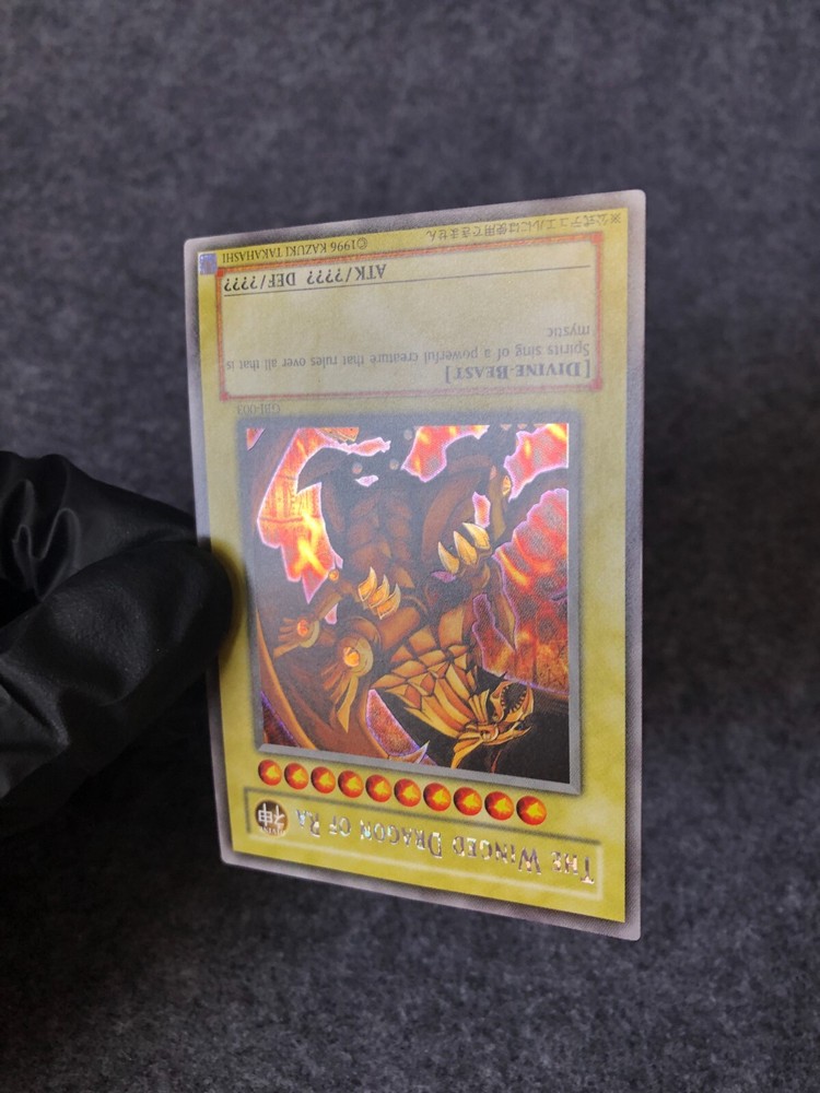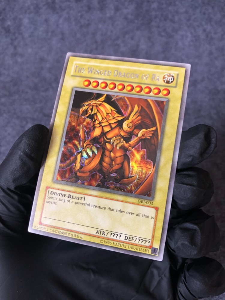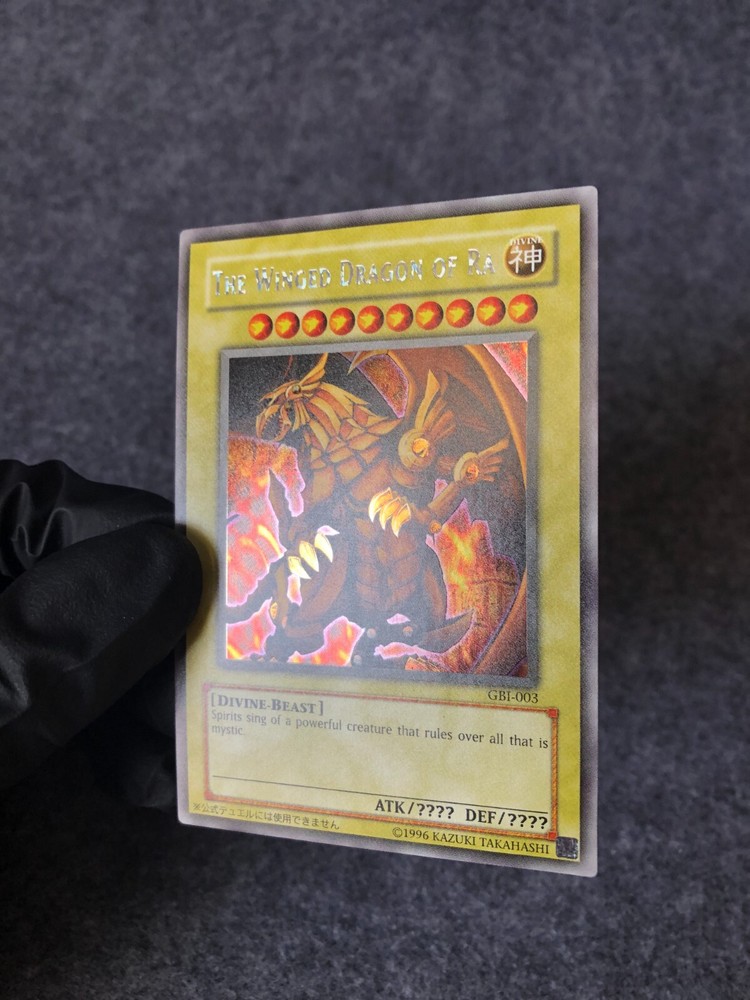 2003 Yu-Gi-Oh! TCG The Winged Dragon of Ra GBI-003 RARE GAME BOY Advance Promotional Card. Rarity : Secret Rare Condition : MINT to GEM MINT *** Our cards will be nicely packed which come with protective Sleeve and Magnetic Card Holder. I f you have any question please feel free to contact me.