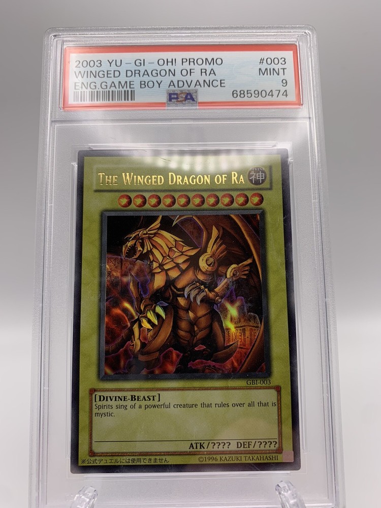 2003 Yugioh TCG Winged Dragon of Ra GBI-003 Ultra Rare PSA Grade 9 Mint.