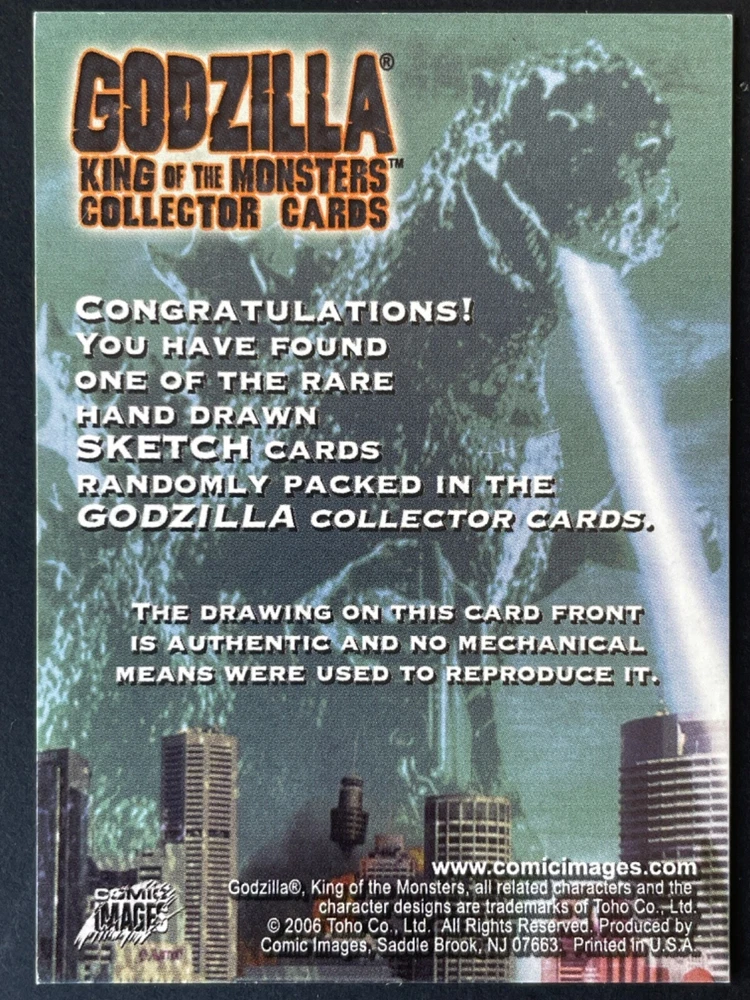 2006 Godzilla King Of The Monsters 1 Of 1 Artist Proof Sketch By Chris Scalf . TCG COLLECTABLE UK We are a family run, limited company specialising in Trading Cards ranging from Pokemon, Star Wars & Sports. We carry a large inventory, accommodating most budgets so please save us as a seller to see our latest listings SHIPPING UK Shipping All cards are shipped via Royal Mail with tracking details uploaded to eBay. International Shipping All cards are shipped using eBay?s Global Shipping Programme and tracking details are automatically added.