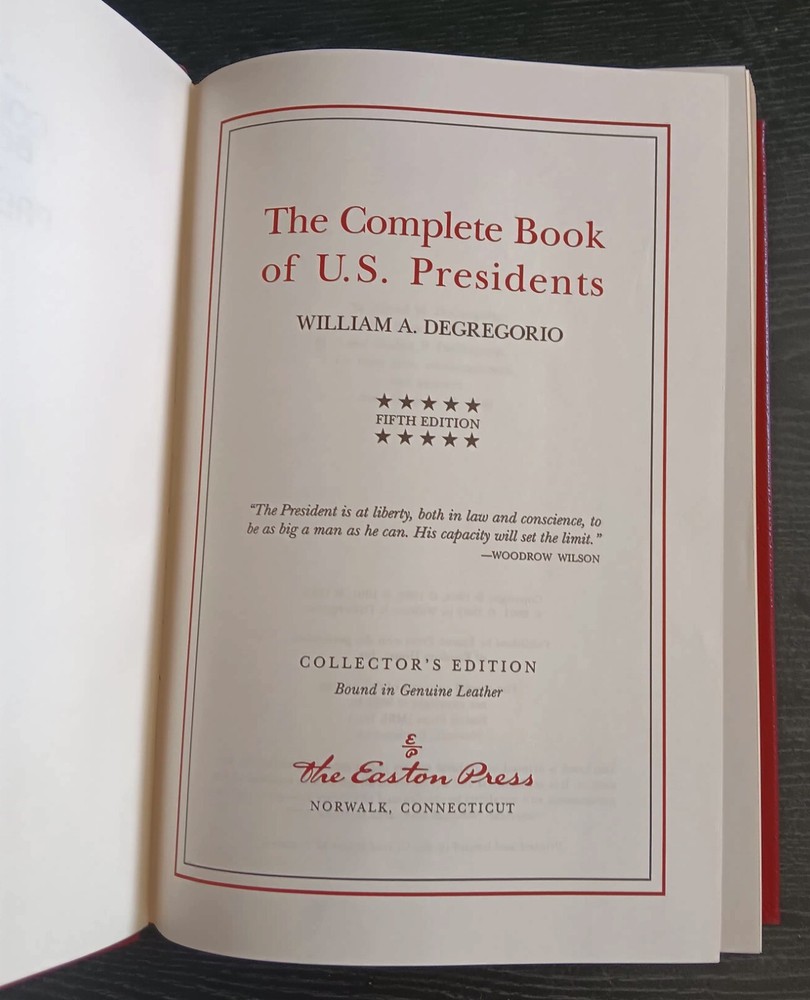 2006 THE COMPLETE BOOK OF U.S. PRESIDENTS BY WILLIAM A. DEGREGORIO/ EASTON PRESS 5TH EDITION.