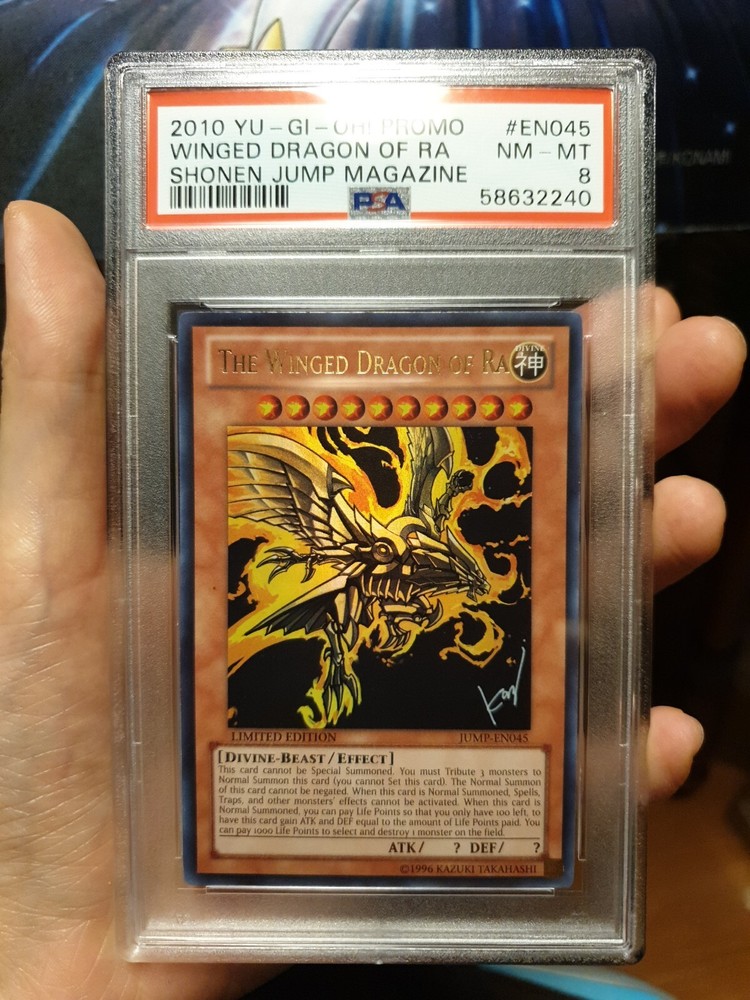 Will be shipped in a sleeve. Feel free to check out my IG Bodangers ♡ 2010 Yu-Gi-Oh! Limited Ultra Edition Winged Dragon Ra Shonen Jump #EN045 PSA 8.