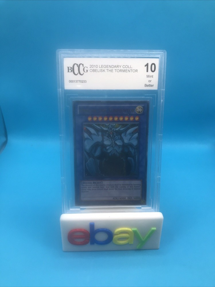 This limited edition Yu-Gi-Oh! card features the powerful Divine-Beast monster Obelisk The Tormentor, with impressive attack and defense stats of 4000 each. The card is part of the Yu-Gi-Oh! Legendary Collection and is in excellent condition, graded at a Beckett BCCG 10 Mint level. The card is English language, standard size, and manufactured by Konami in 2010. It is a must-have for any serious Yu-Gi-Oh! collector, especially those who are fans of the Divine-Beast monster type and the character Obelisk. Add this ultra rare card to your collection today!