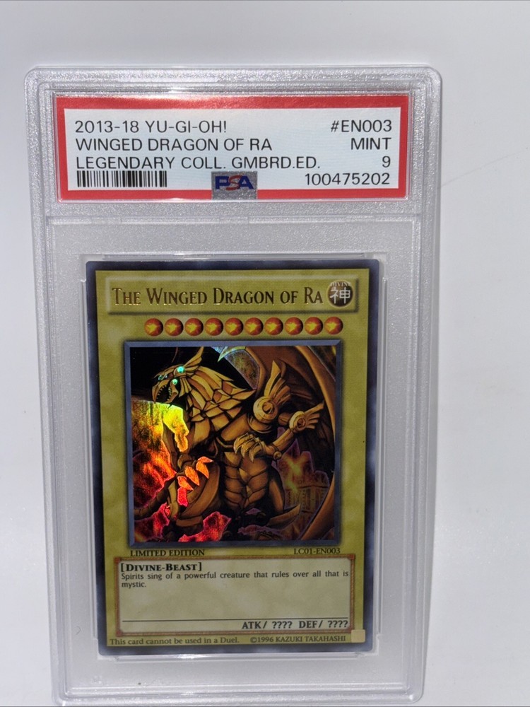 Experience the thrill of the legendary Yu-Gi-Oh! TCG with this rare winged dragon of Ra card from the 2013 Yu-Gi-Oh! Legendary Gameboard Edition. This card is a must-have for any collector or player looking to add a unique and powerful card to their deck. The card features stunning artwork and is in great shape, ready for you to use in battle. Don't miss out on the chance to own this rare card!