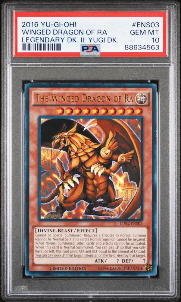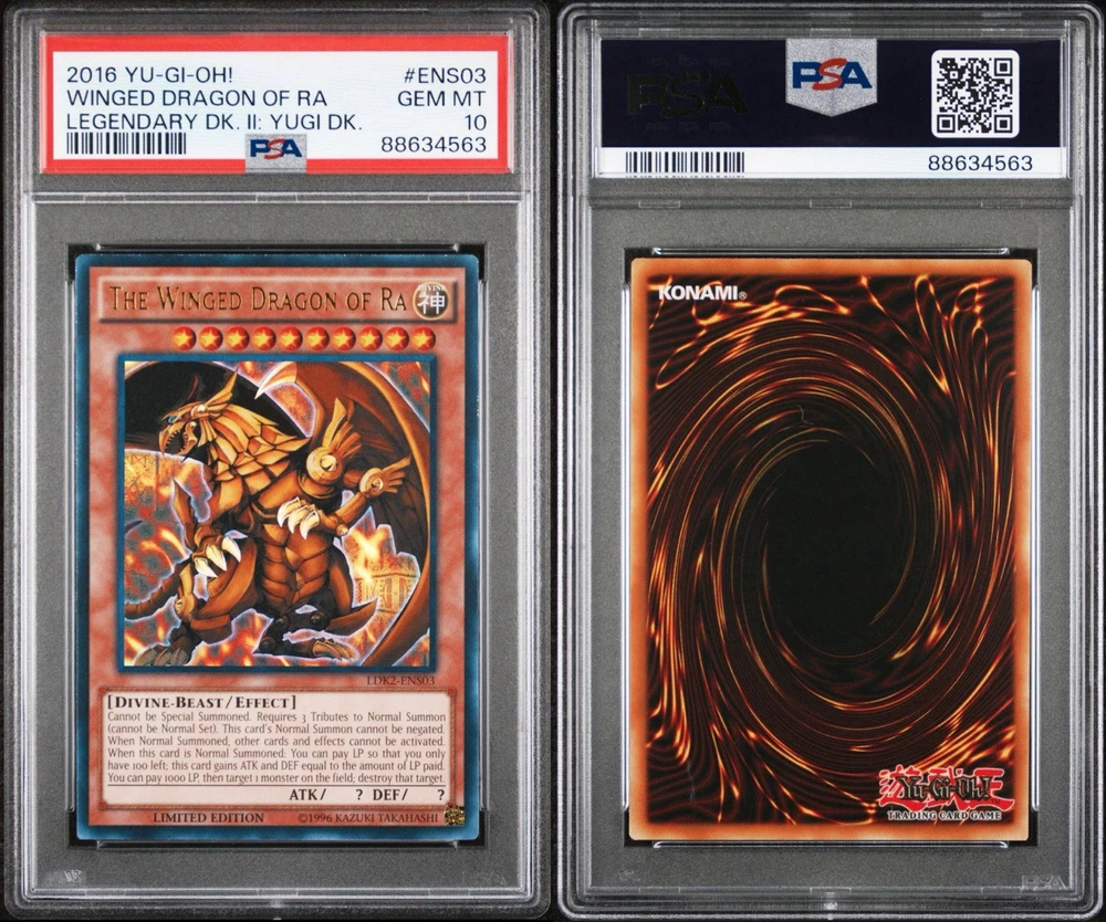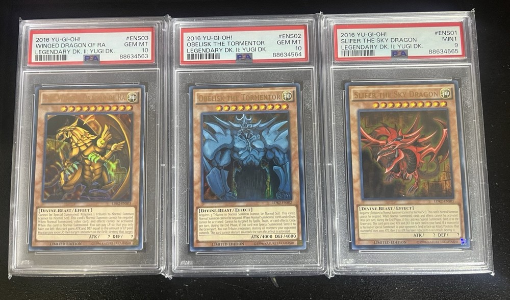 2016 YUGIOH LIMITED EDITION LEGENDARY DKIl: Yugi DK. #ENS Egyptian God Set PSA. Sequential PSA graded set #ENS01-03 2016 YU-GI-OH! LEGENDARY DECK II LEGENDARY DK. II: YUGI DK. WINGED DRAGON OF RA #ENS03 PSA 10 2016 YU-GI-OH! LEGENDARY DECK II LEGENDARY DK. II: YUGI DK.OBELISK THE TORMENTOR #ENS02 PSA 10 2016 YU-GI-OH! LEGENDARY DECK II LEGENDARY DK. II: YUGI DK. SLIFER THE SKY DRAGON #ENS01 PSA 9 Feel free to message for any info and I’ll get back to you asap