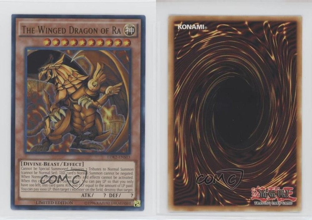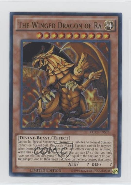 2016 Yu-Gi-Oh! - Legendary Decks II - Collector's Set - Limited Edition #LDK2-ENS03 The Winged Dragon of Ra (UR) COMC Item: 120773239 - YuGiOh Card - Featuring The Winged Dragon of Ra Search for more: 2016 Yu-Gi-Oh! Search for more: 2016 Yu-Gi-Oh! - Legendary Decks II - Collector's Set - Limited Edition View all of our Listings Auctions Buy It Now About Us Located in the beautiful Pacific Northwest, COMC (Check Out My Cards) is the world's largest consignment service for trading card singles. More than 10,000 people have used our consignment service to list over 50 million trading cards. Find out how we can help you consign your items on eBay by contacting us through eBay messaging. COMC -- "The Safe & Easy Way to Buy & Sell" Raw Condition for Modern Cards Unless otherwise noted, raw modern cards are listed in Near Mint-Mint condition or better. A NM-MT card appears to be Mint at first glance, but upon closer inspection, may exhibit some of the following: minor print defects (e.g. roller marks, print line, dimple), minor scratches, slight edge wear, and slight corner wear. Centering is clearly visible in the images provided and does not factor into our condition assessment. Raw Condition for Vintage Cards Unless otherwise noted, raw vintage cards are listed in Excellent condition or better. An EX card may exhibit some of the following: minor rounding of corners, surface wear, print defects, light scratches, and slight edge wear/chipping. Centering is clearly visible in the images provided and does not factor into our condition assessment. Domestic Shipping Combined shipping for multiple items is available. To receive combined shipping, please ensure all desired items are in your eBay shopping cart before proceeding to checkout. eBay limits orders to 40 items per order. We automatically combine multiple orders placed on the same day. If you place multiple orders on the same day, please contact us to request a refund of applicable shipping costs. Signature confirmation may be required on invoices over $400. All cards are protected and shipped securely. International Shipping COMC offers eBay's International Shipping (EIS) for international orders under $2,500* (see country exceptions below). All duties and import fees are paid at checkout; in the rare event that there are additional import fees upon delivery, these are borne by the buyer. EIS packages route through a shipping hub in Erlanger, KY before shipping to their final destination. Please note that EIS does not allow for combined shipments. The shipping rates are determined by eBay and cannot be adjusted. *Maximum sale price exceptions: Colombia, Kuwait ($2,000); Taiwan ($1,539); Chile, Costa Rica, Guatemala, Honduras, Trinidad and Tobago ($1,000); Antigua and Barbuda, Aruba, Belize, Dominica, Grenada, Philippines, Saint Kitts and Nevis, Saint Lucia, Montserrat, Turks and Caicos Islands ($500); Dominican Republic, El Salvador ($200). Please request a shipping quote through eBay messaging for orders that exceed the maximum sale price supported by eBay's International Shipping. You will be responsible for all duties and import fees for international orders shipped outside the EIS. All cards are protected and shipped securely. Payment COMC does not accept offers on our cards through our eBay storefront. COMC utilizes eBay’s managed payments system. If you are experiencing difficulties making a payment, please contact eBay for assistance. Return Policy Returns are only accepted on the rare occasion the item is not as described. If you are making a return, please initiate the return process through eBay so a mailing label can be provided for you. Prior to listing, our expert team carefully assessed this item to represent it accurately. Please review the description and high-definition images prior to purchasing to ensure this item meets your satisfaction. We welcome you to contact us if you have further questions about this item. Trust and Integrity COMC carefully assesses each item consigned to us to prevent fraudulent items from entering the marketplace. If you believe an item offered on COMC may be fraudulent, please contact us with details so we can investigate the issue. Items we determine are outside our supported items policy may be removed. Last Modified: 5/20/2025 12:24:54 PM PDT