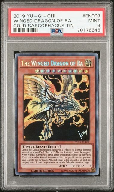 2019 YU-GI-OH! GOLD SARCOPHAGUS TIN #EN009 WINGED DRAGON OF RA PSA 9 Graded Shipping & Handling: Ships securely for maximum protection Fast shipping via USPS Priority Mail No returns on items to prevent potential tampering. Please review all photos carefully before purchasing. I am a verified business with 3+ years of experience on multiple platforms so you can buy with confidence.