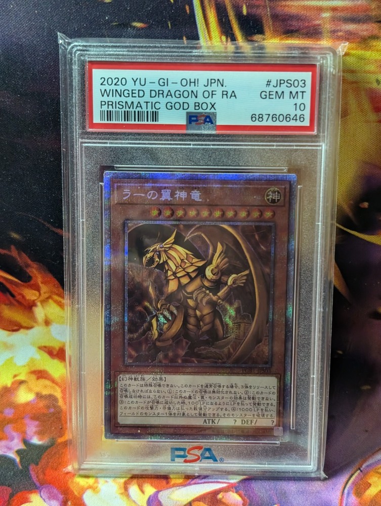 2020 Prismatic God Box Jpn WINGED DRAGON OF RA PSA #JPS03 Gem Mint 10 Rare HTF This listing has one item up for grabs. This will make a nice addition to your Graded Card / Winged Dragon of RA / Yugioh card collection. These pieces comes from a private collection. Comes from a smoke, vape and drug free environment Feel free to send out any questions and thanks for looking at our eBay Listings. Y'all have a great day. You are bidding on one (01) 2020 Prismatic God Box Jpn WINGED DRAGON OF RA PSA #JPS03 Gem Mint 10 Rare HTF