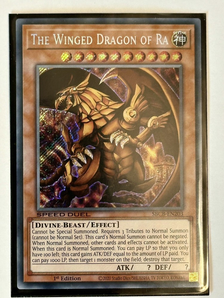 Experience the thrill of the Yu-Gi-Oh! Speed Duel with this rare edition of The Winged Dragon Of Ra. This collectible item is a must-have for any fan of the franchise, manufactured in Japan in 2020. Add this unique piece to your collection and relive the excitement of the game. This item is perfect for those who appreciate animation merchandise and is a great addition to any collection. Don't miss out on the chance to own this rare edition of The Winged Dragon Of Ra Speed Duel item. Get your hands on it now! Just out of the box. Mint condition.
