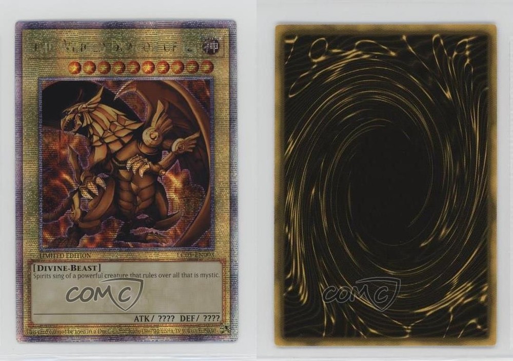 2023 Yu-Gi-Oh! - Legendary Collection 25th Anniversary - [Base] - Limited Edition #LC01-EN003.1 Quarter Century Secret Rare - The Winged Dragon of Ra COMC Item: 270298488 - YuGiOh Card - Featuring The Winged Dragon of Ra Search for more: 2023 Yu-Gi-Oh! - Legendary Collection 25th Anniversary Search for more: 2023 Yu-Gi-Oh! - Legendary Collection 25th Anniversary - [Base] - Limited Edition View all of our Listings Auctions Buy It Now About Us Located in the beautiful Pacific Northwest, COMC (Check Out My Cards) is the world's largest consignment service for trading card singles. More than 10,000 people have used our consignment service to list over 50 million trading cards. Find out how we can help you consign your items on eBay by contacting us through eBay messaging. COMC -- "The Safe & Easy Way to Buy & Sell" Raw Condition for Modern Cards Unless otherwise noted, raw modern cards are listed in Near Mint-Mint condition or better. A NM-MT card appears to be Mint at first glance, but upon closer inspection, may exhibit some of the following: minor print defects (e.g. roller marks, print line, dimple), minor scratches, slight edge wear, and slight corner wear. Centering is clearly visible in the images provided and does not factor into our condition assessment. Raw Condition for Vintage Cards Unless otherwise noted, raw vintage cards are listed in Excellent condition or better. An EX card may exhibit some of the following: minor rounding of corners, surface wear, print defects, light scratches, and slight edge wear/chipping. Centering is clearly visible in the images provided and does not factor into our condition assessment. Domestic Shipping Combined shipping for multiple items is available. To receive combined shipping, please ensure all desired items are in your eBay shopping cart before proceeding to checkout. eBay limits orders to 40 items per order. We automatically combine multiple orders placed on the same day. If you place multiple orders on the same day, please contact us to request a refund of applicable shipping costs. Signature confirmation may be required on invoices over $400. All cards are protected and shipped securely. International Shipping COMC offers eBay's International Shipping (EIS) for international orders under $2,500* (see country exceptions below). All duties and import fees are paid at checkout; in the rare event that there are additional import fees upon delivery, these are borne by the buyer. EIS packages route through a shipping hub in Erlanger, KY before shipping to their final destination. Please note that EIS does not allow for combined shipments. The shipping rates are determined by eBay and cannot be adjusted. *Maximum sale price exceptions: Colombia, Kuwait ($2,000); Taiwan ($1,539); Chile, Costa Rica, Guatemala, Honduras, Trinidad and Tobago ($1,000); Antigua and Barbuda, Aruba, Belize, Dominica, Grenada, Philippines, Saint Kitts and Nevis, Saint Lucia, Montserrat, Turks and Caicos Islands ($500); Dominican Republic, El Salvador ($200). Please request a shipping quote through eBay messaging for orders that exceed the maximum sale price supported by eBay's International Shipping. You will be responsible for all duties and import fees for international orders shipped outside the EIS. All cards are protected and shipped securely. Payment COMC does not accept offers on our cards through our eBay storefront. COMC utilizes eBay’s managed payments system. If you are experiencing difficulties making a payment, please contact eBay for assistance. Return Policy Returns are only accepted on the rare occasion the item is not as described. If you are making a return, please initiate the return process through eBay so a mailing label can be provided for you. Prior to listing, our expert team carefully assessed this item to represent it accurately. Please review the description and high-definition images prior to purchasing to ensure this item meets your satisfaction. We welcome you to contact us if you have further questions about this item. Trust and Integrity COMC carefully assesses each item consigned to us to prevent fraudulent items from entering the marketplace. If you believe an item offered on COMC may be fraudulent, please contact us with details so we can investigate the issue. Items we determine are outside our supported items policy may be removed. Last Modified: 5/21/2025 6:59:45 PM PDT