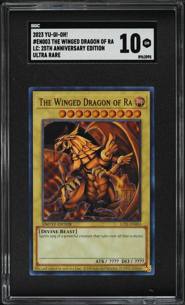 Celebrate a milestone in the world of Yu-Gi-Oh! TCG with The Winged Dragon of Ra card, commemorating the 25th anniversary. This premium card, numbered #LC01-EN003, is a must-have for collectors.