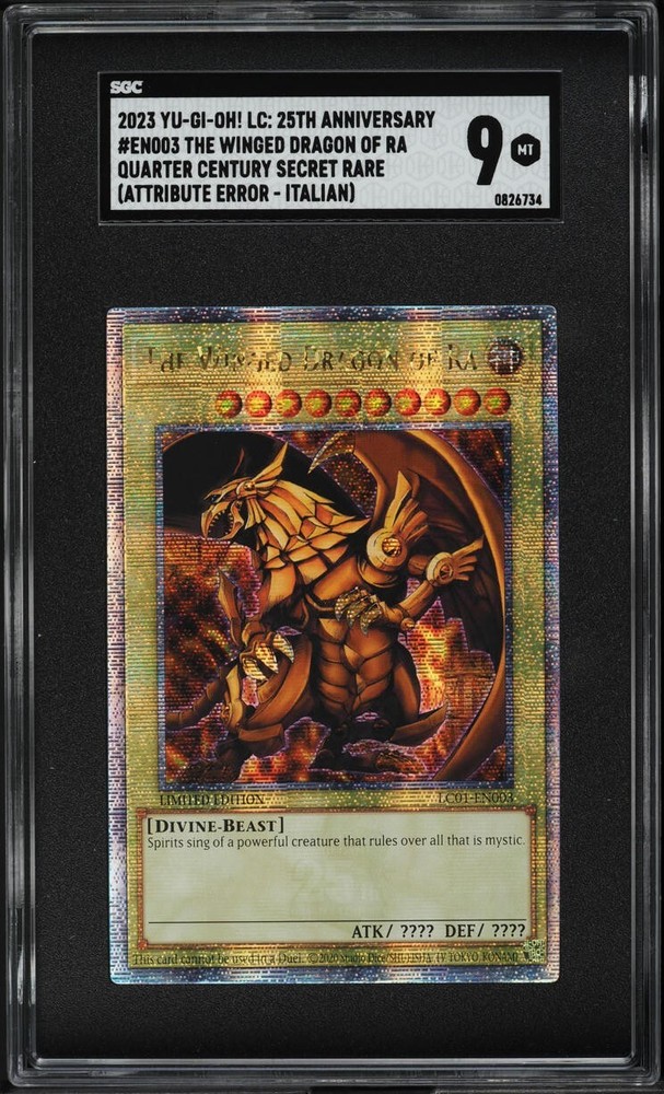 Explore the realm of the divine with the 2023 Yugioh Quarter Century Rare The Winged Dragon Of Ra #LC01-EN003, a must-have for any serious collector or duelist. This iconic card, revered for its powerful effect and stunning artwork, is a true treasure from the Yu-Gi-Oh! TCG universe. Graded SGC 9, this card promises both premium quality and authenticity, ensuring it stands out in your collection. Elevate your game with the legendary might of The Winged Dragon Of Ra, and experience the strategic depth that has captivated players for decades.