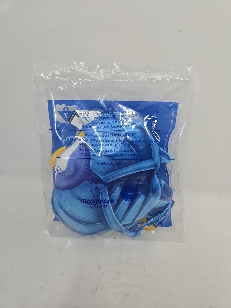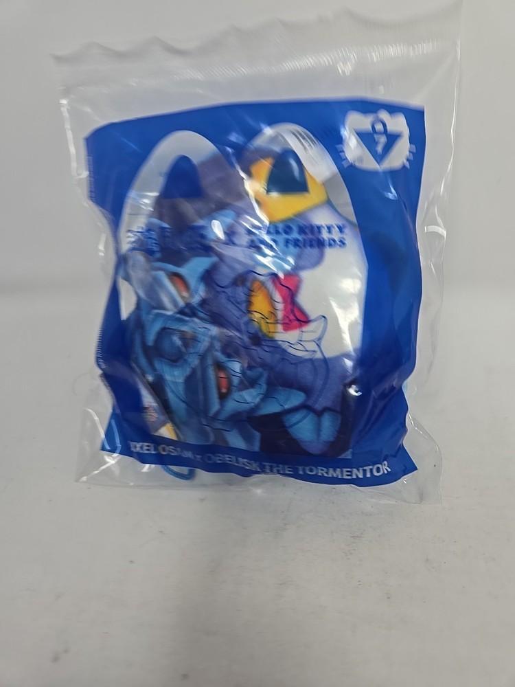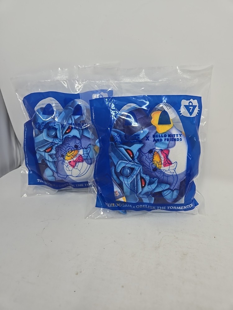 The product is a McDonald's toy featuring a collaboration between Tuxedo Sam and Obelisk The Tormentor from the Yu-Gi-Oh trading card game. It is part of the Hello Kitty character family, making it a fun and collectible item for fans of both franchises. Released in 2024, this toy combines elements of fast food promotions with popular characters from the entertainment industry, offering a unique and playful addition to any collection.